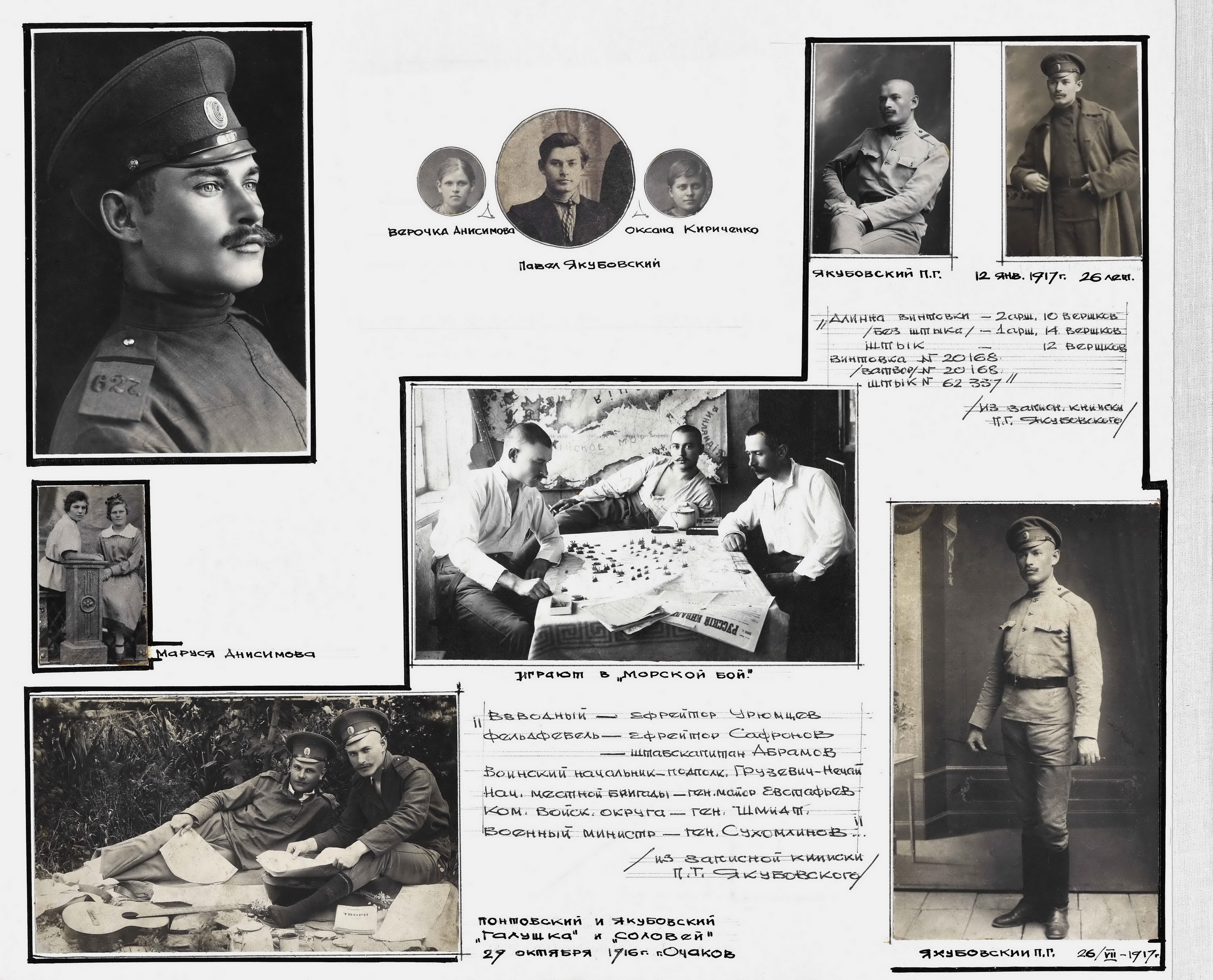 Татьяна Голубченко: Как мы уже отметили, Павел Геронтьевич Якубовский писал дневники. Любовь Павловна, когда оформляла фотоальбом, в качестве комментариев для ранних фотографий — когда папа служил в армии, когда общался с художниками в начале своего творческого пути, — использовала цитаты из его дневников. Там он даёт характеристики людям, приводит очень подробные описания, вплоть до того, что он пишет там о размерах винтовки.