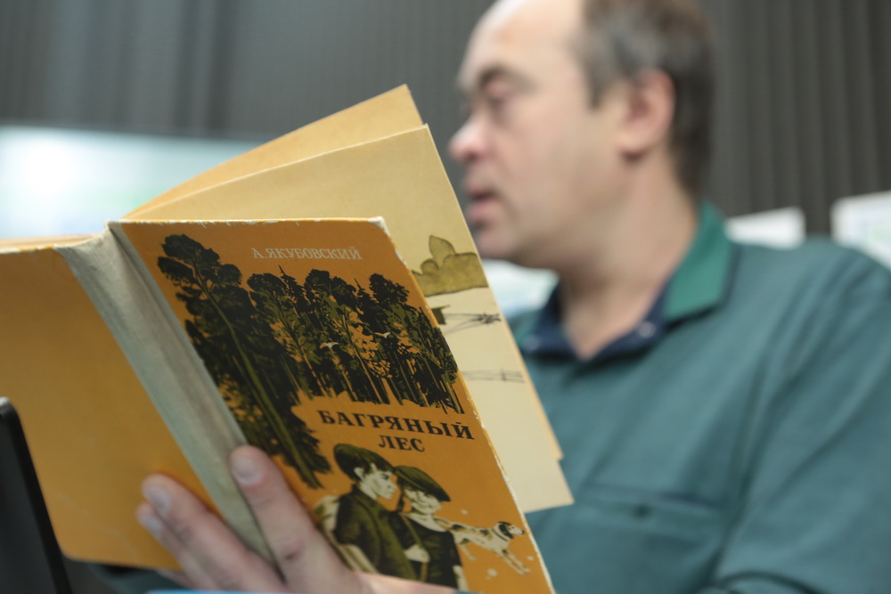 Евгений Ларин: Я уже держу в руках раскрытую книгу Аскольда Якубовского. Любопытно то, что сейчас мы часто говорим, мол, у художника Павла Якубовского был сын, который стал знаменитым писателем. А когда-то говорили, что у знаменитого писателя Аскольда Якубовского был отец-художник. Аскольд был достаточно известным писателем, он дружил с Астафьевым, он много издавался. Он был в основном фантастом, но много писал и про природу. Для сибирских писателей вообще очень характерна тема природы, это их сильная черта. Приведу слова Аскольда Якубовского из аннотации к сборнику «Багряный лес»: «Я хотел — повестью — поговорить с теми, кто сменит нас и будет решать главную задачу современности: как жить Человеку в Природе».