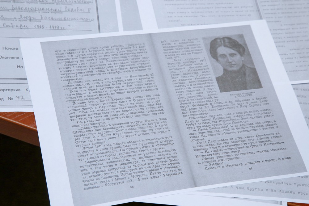 Казалось бы, максимально расплывчато. Но там оказались воспоминания Елизаветы Васильевны Ванюковой, в девичестве Сурновой. Это дочь известной подпольщицы Елены Кирилловны Сурновой, которой принадлежала явочная квартира по улице Енисейской. Это воспоминания её дочери, которая, по сути, в подпольной работе была непосредственной ученицей Евдокии Борисовны Ковальчук.