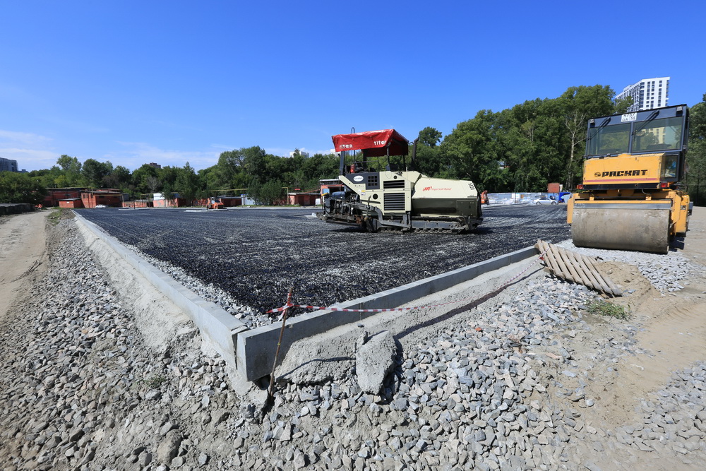 Огромную парковку заасфальтировали у нового парка Каменка в Новосибирске