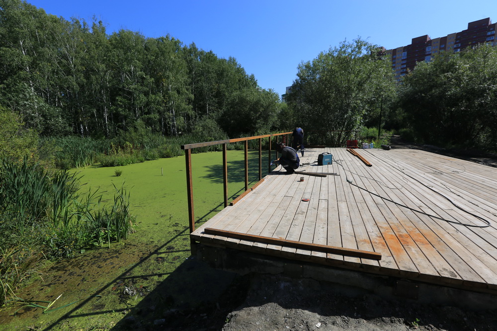 На улице Адриена Лежена в Новосибирске строят первый в России заливной ландшафтный парк. Несмотря на то что работы в полном разгаре, территория открыта для местных жителей. Часть из запланированного благоустройства уже выполнили. По экотропам на сваях можно гулять. Завершить задуманное собираются в середине октября. Что ещё осталось доделать, выяснили «Новосибирские новости».