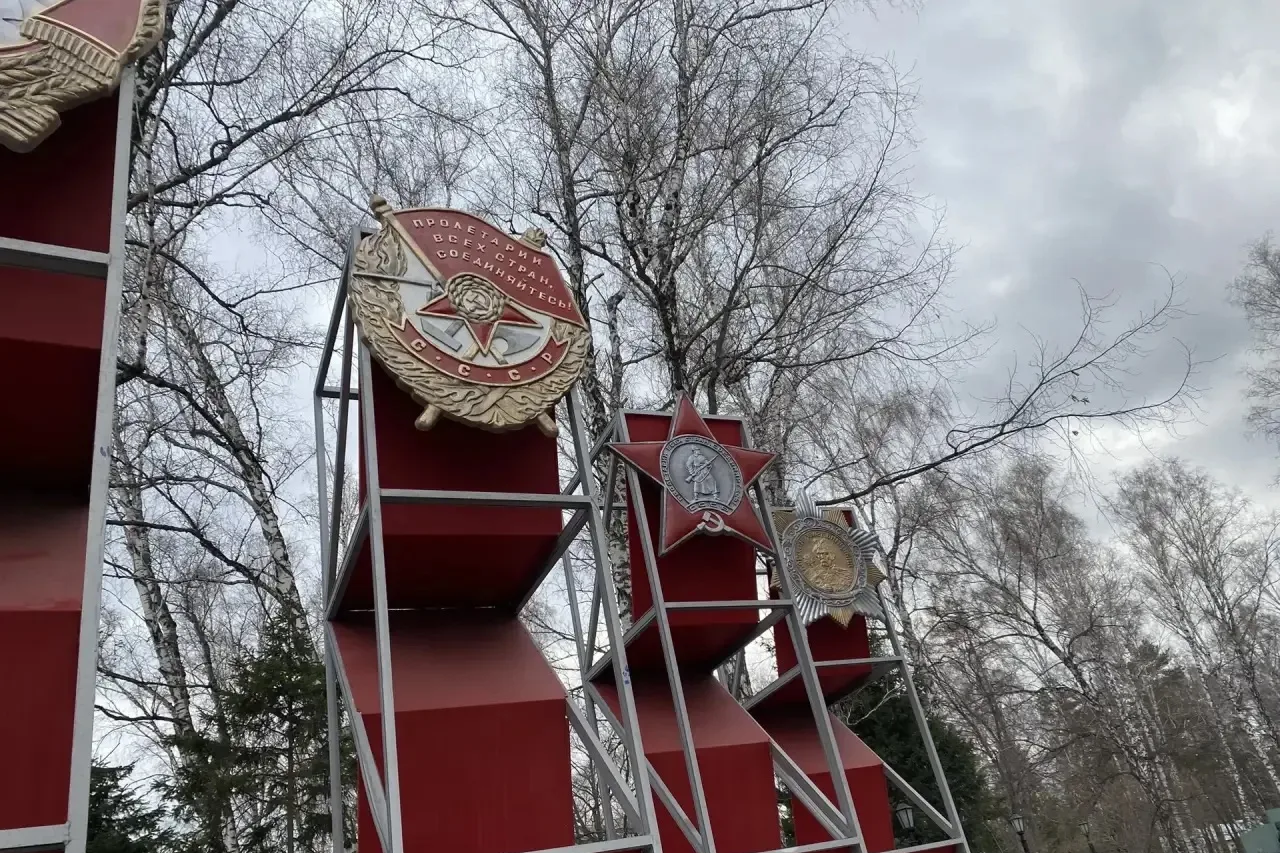 Огромные ордена обновили на стелах «Звезда» в сквере Новосибирска