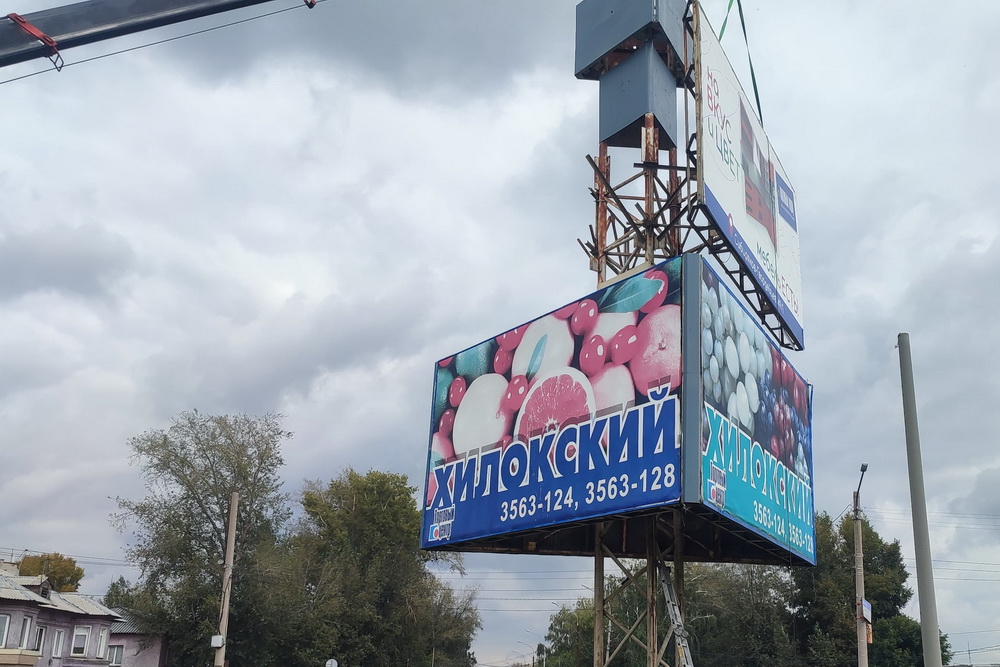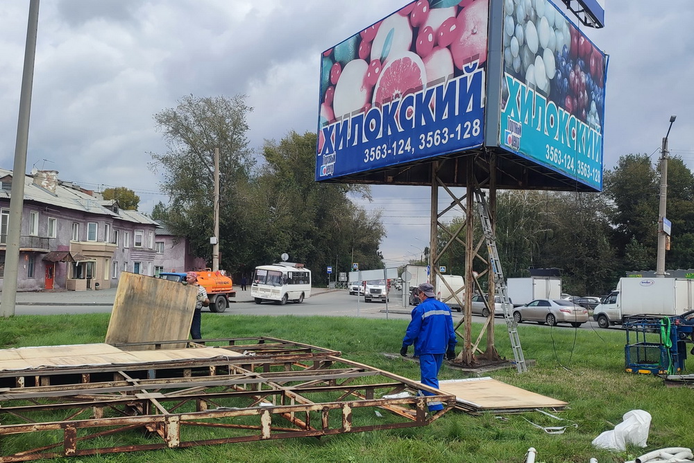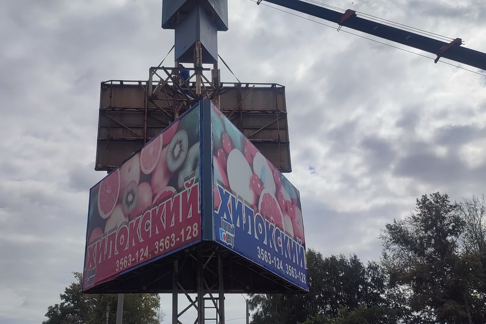 «Трёхсторонний щит рекламирует ТЦ „Хилокский“ на трёх сторонах. Мы договорились с ООО „Рекламные технологии“, которому принадлежит объект, выполнить демонтаж. Затем эту площадку перед Хилокским микрорайоном планируется благоустроить и установить въездную стелу», — пояснил Алексей Ярик.