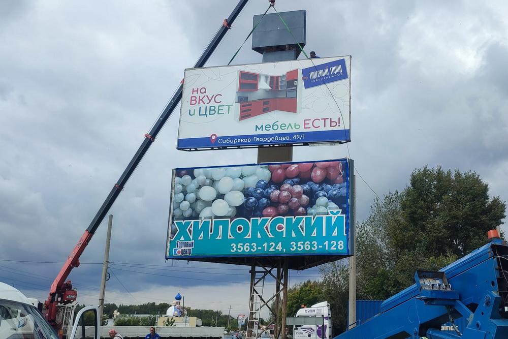 В Ленинском районе Новосибирска на кольцевой развязке улиц Петухова и Хилокской убирают рекламные щиты. Демонтаж предусмотрен программой по благоустройству территории Хилокского микрорайона. На освобождённой площадке планируют установить въездную стелу.