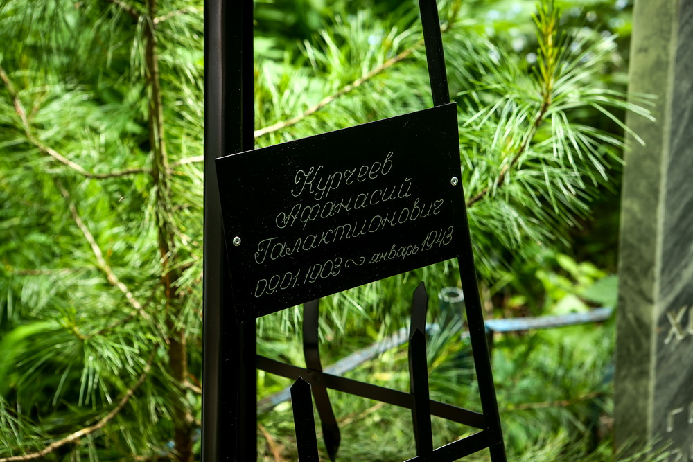 Останки Афанасия Курчеева захоронили на Заельцовском кладбище. Он ушёл на фронт в 1941-м, а через два года семье сообщили о том, что красноармеец пропал без вести.