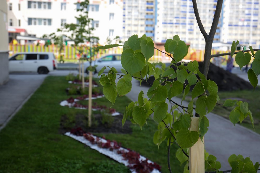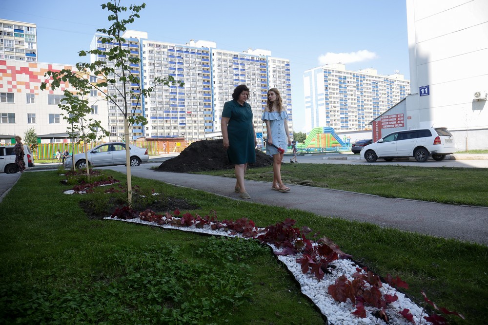 — С помощью преподавателя Елены. Они с Татьяной прорабатывали то, какие деревья сажать сюда. Дома тут высокие, и тень падает, солнца мало. И они вместе, в тандеме, прорабатывали — что лучше сюда посадить. Естественно, выбрали многолетники. Пришли к единому мнению, обратились в мэрию. И они предоставили нам всё это как пилотному проекту.