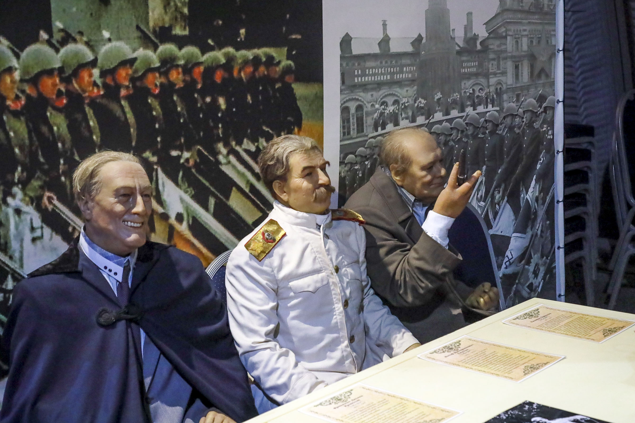 Целый раздел выставки посвящён политическим деятелям. Франклин Рузвельт, Иосиф Сталин и Уинстон Черчилль обсуждают важные вопросы на Ялтинской конференции. Дополняет композицию армейский автомобиль Willys MB. Эту модель выпускали с 1941 по 1945 год специально для военных нужд.
