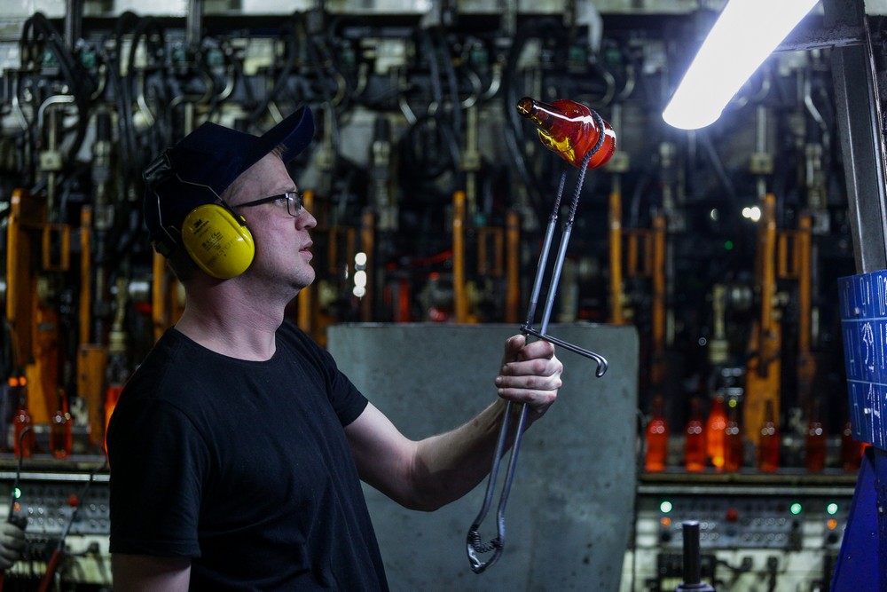 — Да, действительно. Сегодня, кстати, вы видите достаточно исторический момент для предприятия. Сейчас мы производим зелёное стекло. Это впервые за всю историю существования предприятия как производителя. В тарном отделе мы запустили производство зелёного стекла.