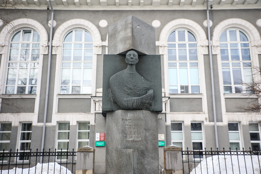 В 1999-м перед входом в здание установили бюст замечательного врача Сергея Юдина, который работал в ней некоторое время.