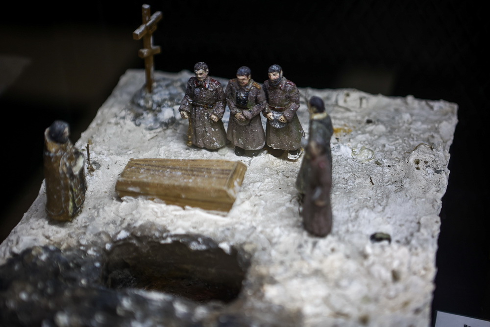 Рядом с первым залом музея находится макет кладбища. Один из могильных крестов — уникальная находка: её подняли со дна Обского водохранилища. По словам Татьяны Якушиной, по мальтийским крестам можно сделать вывод, что в Бердске в своё время были масоны.