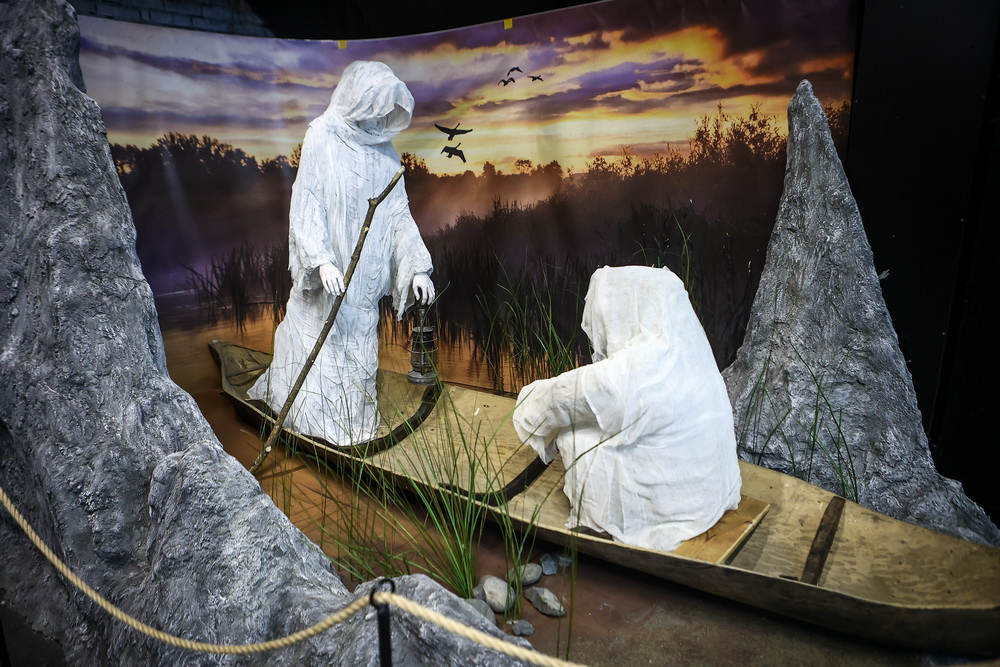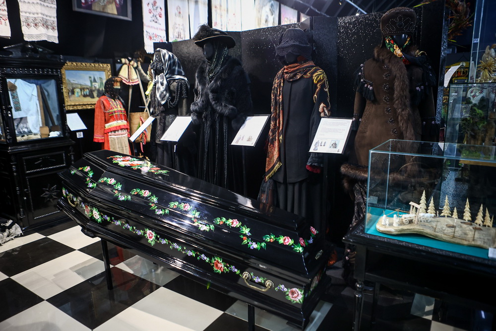 Тут же можно посмотреть на коллекцию шикарных и очень дорогих катафалков, а также на погребальную ладью и домовины. Настоящую, датированную XVIII–XIX веком, выдолбленную из бревна музею передал Северский музей.