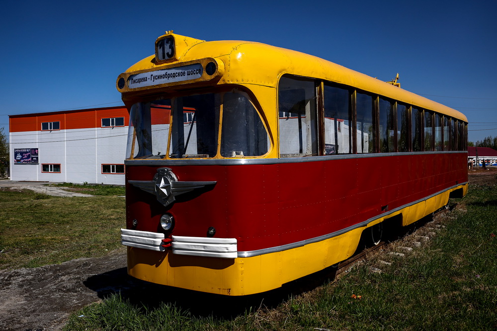 Предметом уличной экспозиции Музея смерти стал легендарный новосибирский трамвай №13. Вагон модели РВЗ-6 ходил по Новосибирску в 1980-х годах. В 2016-м экземпляр списали, затем его купил крематорий.