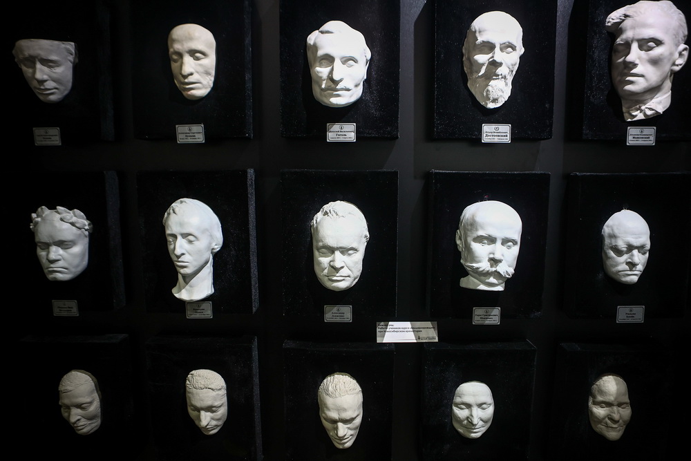 Гордость заведения — коллекция копий посмертных масок Пушкина, Есенина, Маяковского, Гоголя, Достоевского, Сталина и других исторических личностей.
