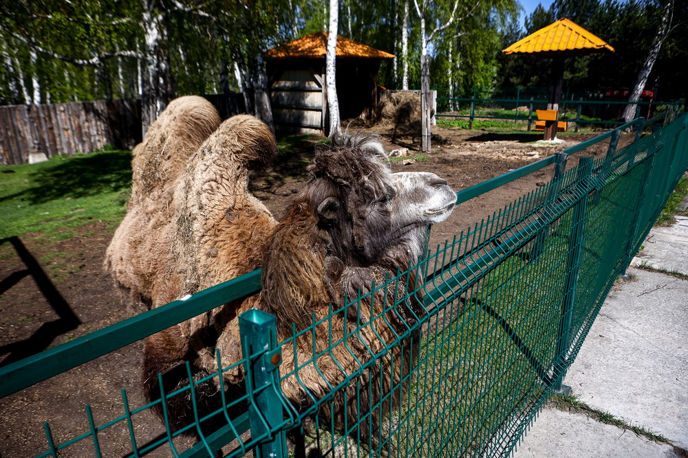 Пространство перед крематорием и музеем называется Парком Памяти. Здесь тоже много интересного. В вольере живёт двугорбый монгольский верблюд по кличке Фараон. Его в 2010 году купил Сергей Якушин. На ограждении висит табличка, предупреждающая, что животное не любит резких движений и может укусить или плюнуть. Отметим, что Фараон очень любопытный, с интересом рассматривает посетителей.