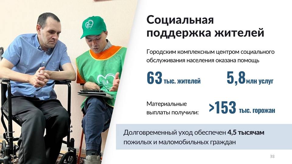 Важные задачи решаем в социальной сфере. Реализуются мероприятия по повышению качества социального обслуживания и доступности необходимых услуг. Приступаем к формированию бесшовных межведомственных маршрутов оказания помощи. Во всех районах города на базе восьми филиалов Городского социального центра создаётся сеть современных социальных МФЦ. Услуги будут доступны в формате «одного окна».
