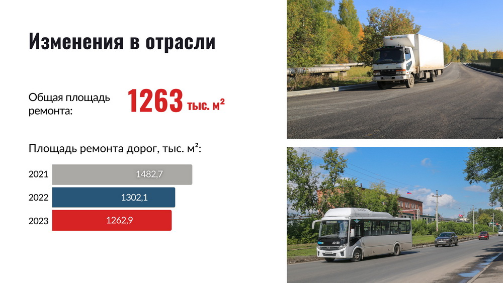 Общая площадь дорожного ремонта в прошлом году превысила 1,2 млн кв. метров. Для приведения улиц в нормативное состояние необходимо сохранять такие темпы в ближайшие несколько лет.