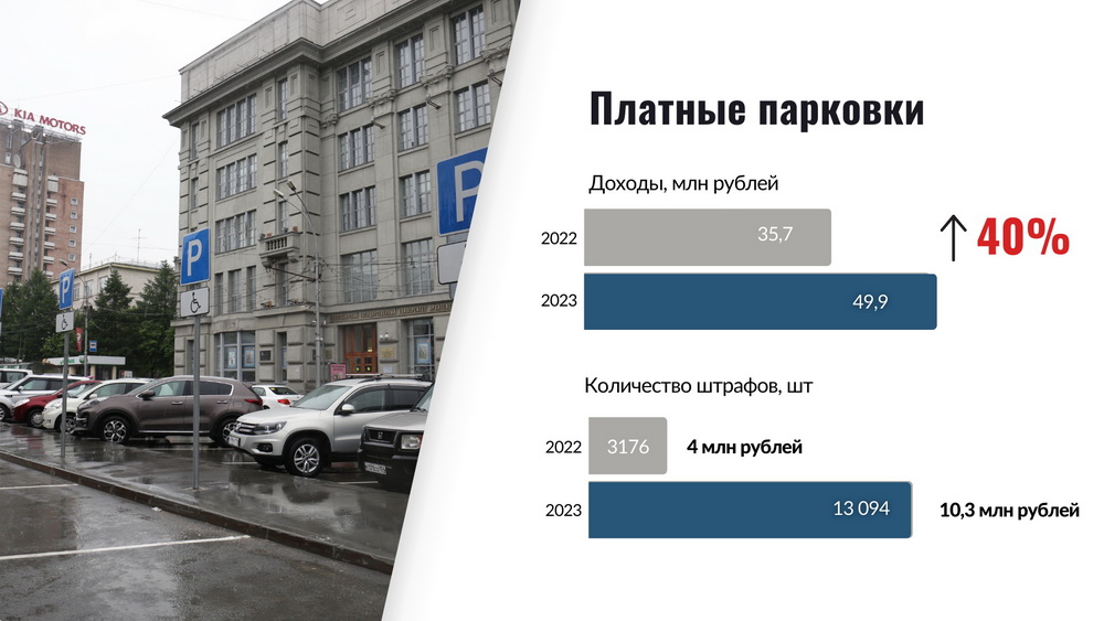 Есть изменения в организации платного парковочного пространства. Город повышает дисциплину по оплате услуг, увеличивает зоны охвата фото- и видеофиксацией. Количество штрафов возросло в четыре раза — с 3000 до 13 000.