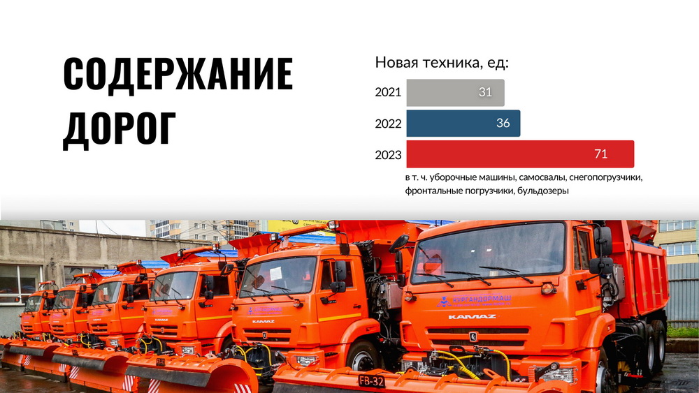 Дорожные учреждения за год получили 71 единицу техники для содержания улиц. В этой сфере был принят ряд принципиальных управленческих решений.