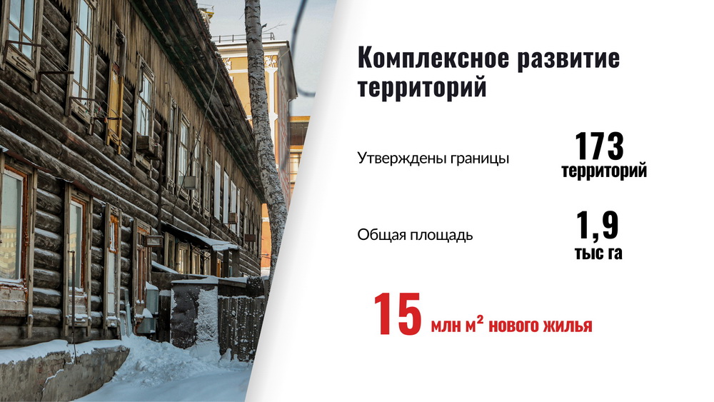 С 2024 года основным вектором станет комплексное развитие территорий. Обязательное условие освоения площадок — возведение объектов социальной сферы. Сейчас в работе 13 проектов КРТ. В том числе семь площадок предоставлены застройщикам, договоры по ним заключены. По трём договоры планируют заключить в феврале и марте. В целом в процесс комплексного развития в этом году будут вовлечены земли, площадь которых позволит обеспечить жилищное строительство 2 млн кв. метров жилья. В том числе территория рядом с «Локомотив-Ареной» и локации в Октябрьском районе.