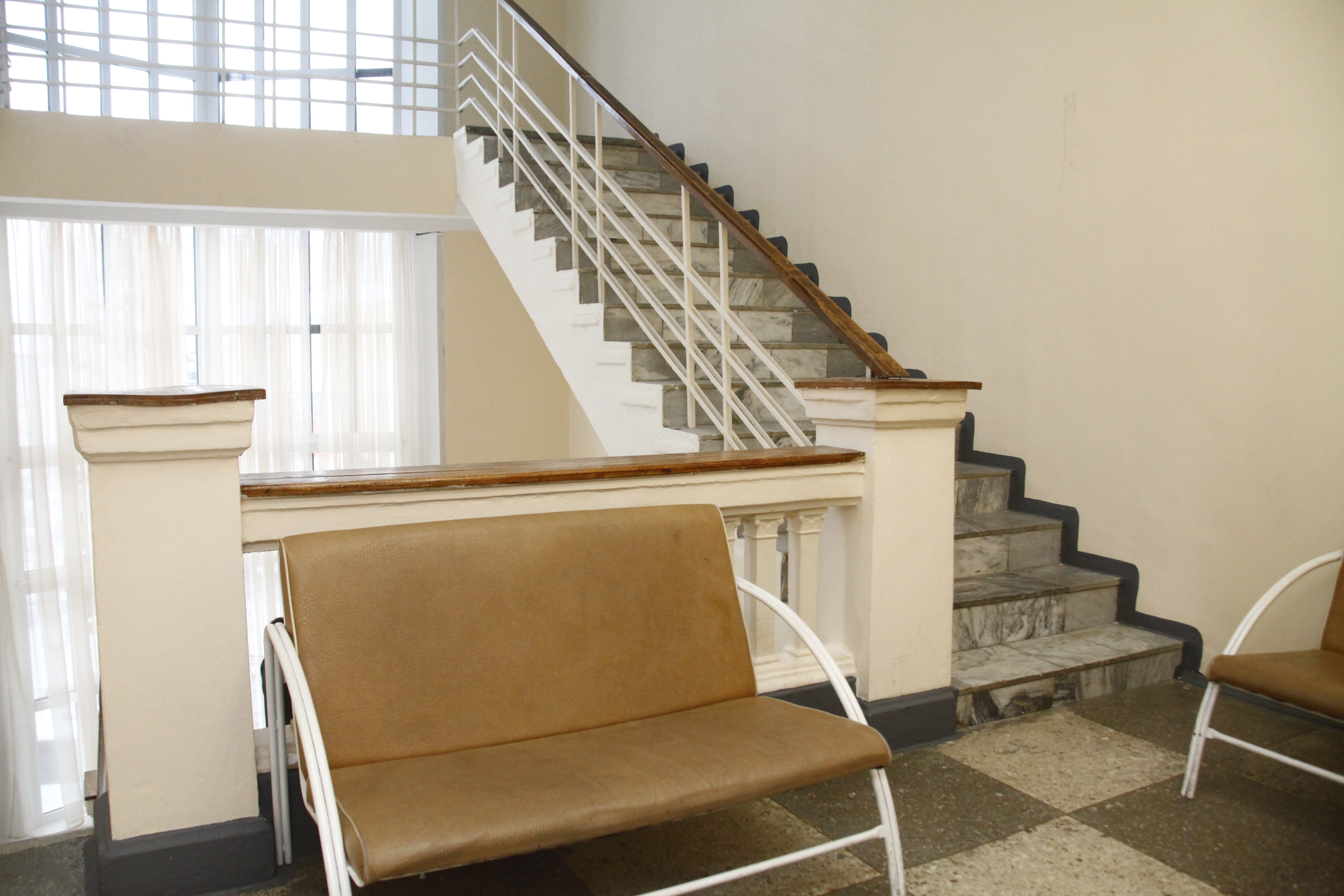 В 20-х годах в строительстве впервые начали применять бетонные перекрытия. В фойе можно увидеть, как балки сходятся в перспективе.