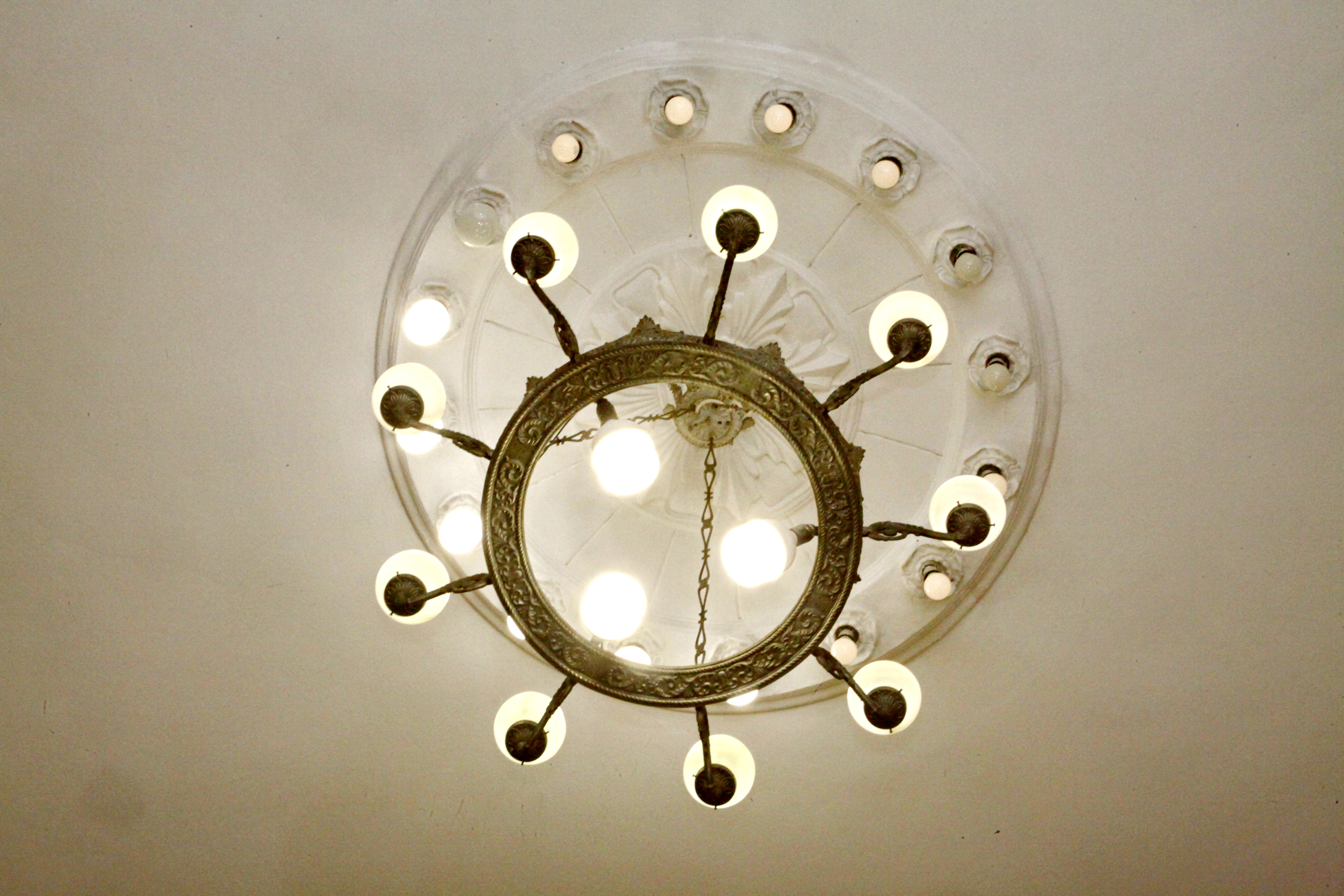 Большая круглая люстра над лестницей, ведущей на второй этаж, — это, по словам Алексея Крыжановского, не только предмет охраны, но и повод для головной боли. Заменить перегоревшие лампочки не так-то просто.