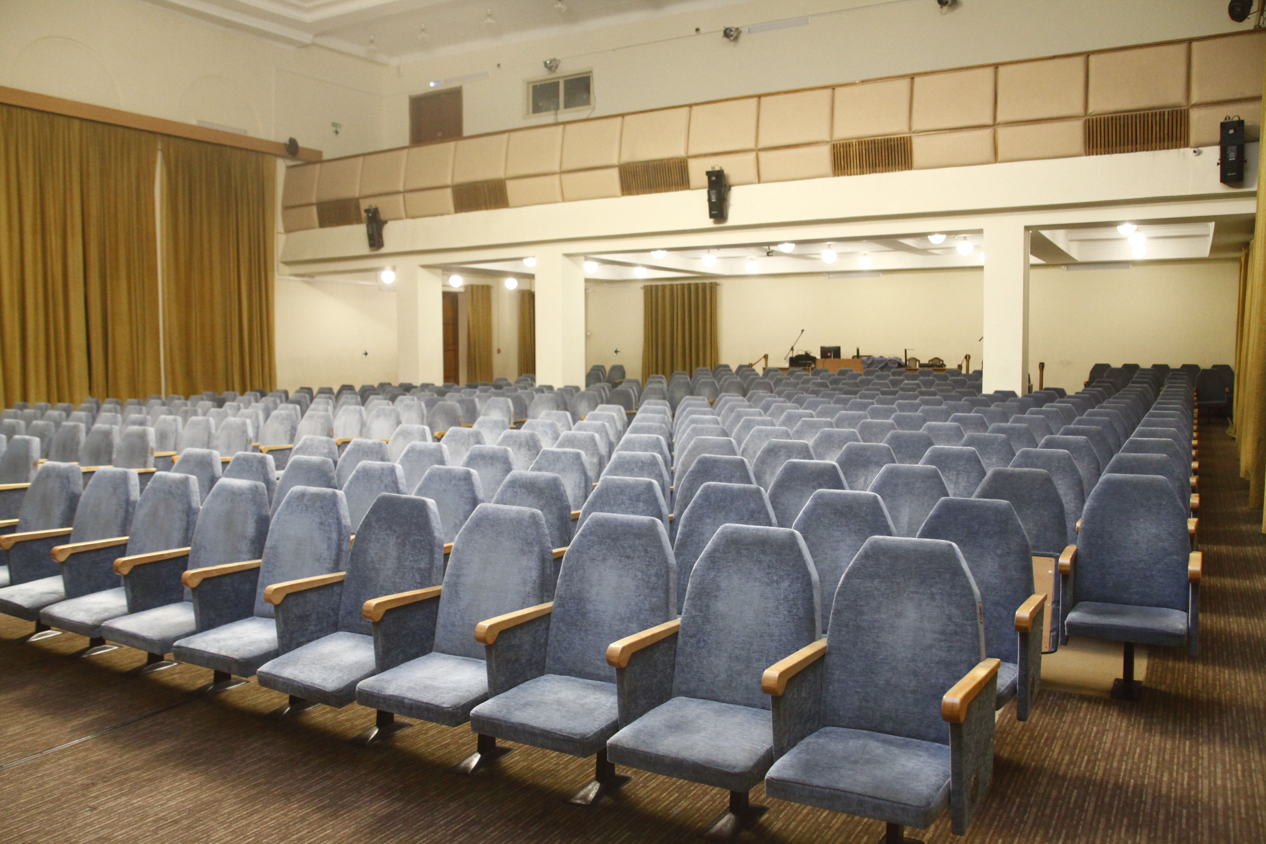 «Планируем историческую реконструкцию зала. НПЦ сейчас разрабатывает проектную документацию. Мы хотим восстановить первоначальный облик помещения с учётом современных требований. Потолок и большая люстра — предмет охраны. Дерматиновое покрытие ограждения балкона и гипсокартоновую обшивку колонн уберём, чтобы открыть декоративные элементы. Кресла мы заменим, сделаем небольшой подъём пола для удобства зрителей», — поделился планами обновления Алексей Крыжановский.