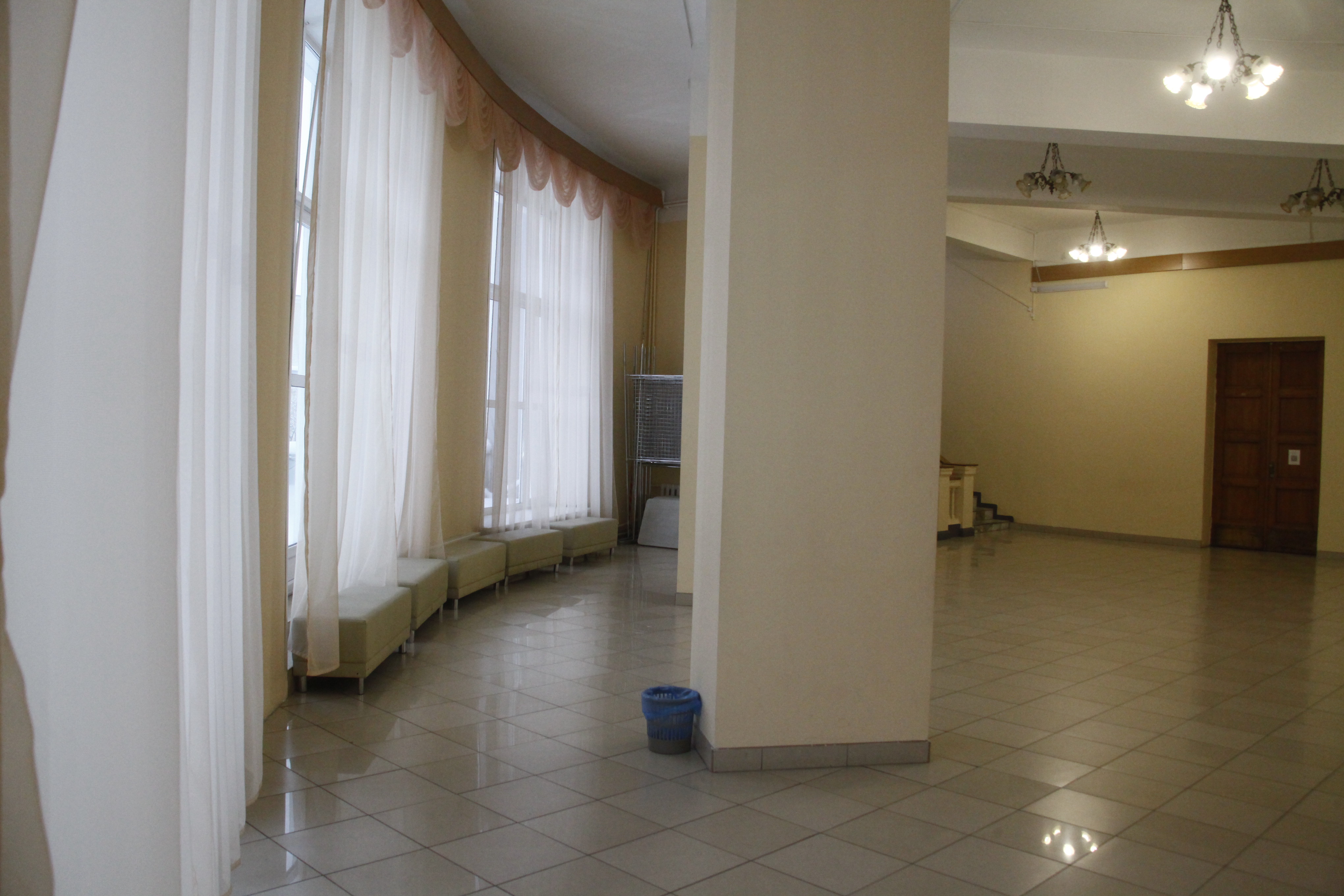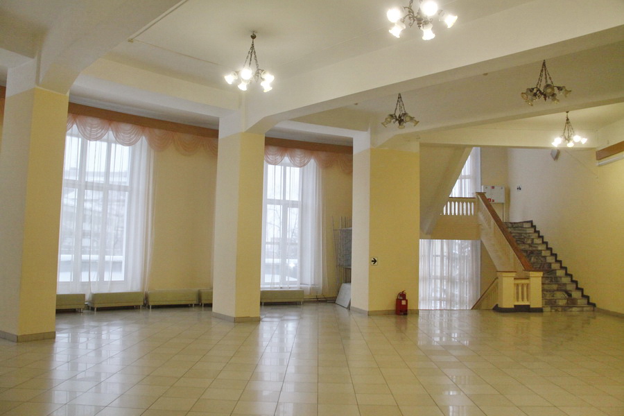 У объектов, выстроенных по законам рационализма, не должно быть лишних площадей, и Клуб Революция этим требованиям полностью соответствует. Фойе второго этажа удивляет своим объёмом. Снаружи здание не выглядит таким вместительным. Колонный зал используют для мероприятий, в том числе балов и новогодних ёлок. Туда, по словам Алексея Крыжановского, спокойно помещается 500 человек, и при этом никто никому не мешает.