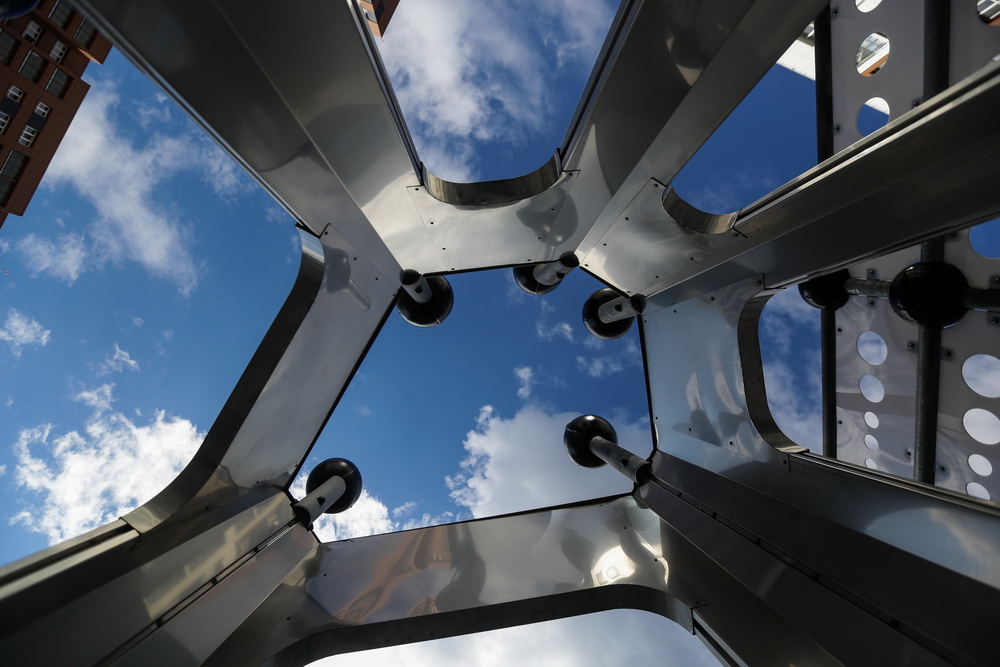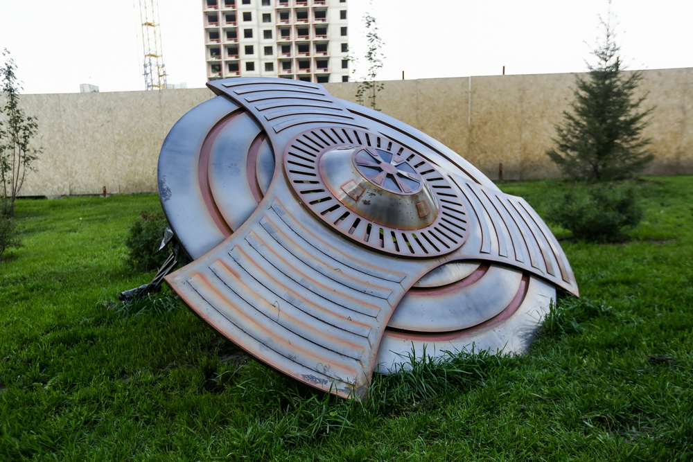 Сейчас, кроме этой скульптуры, тематическое оформление двора создают макет упавшего НЛО, космические врата в виде двух больших рамок, детские игровые площадки в форме летательных аппаратов, карта звёздного неба, качели и карусели инопланетного дизайна.