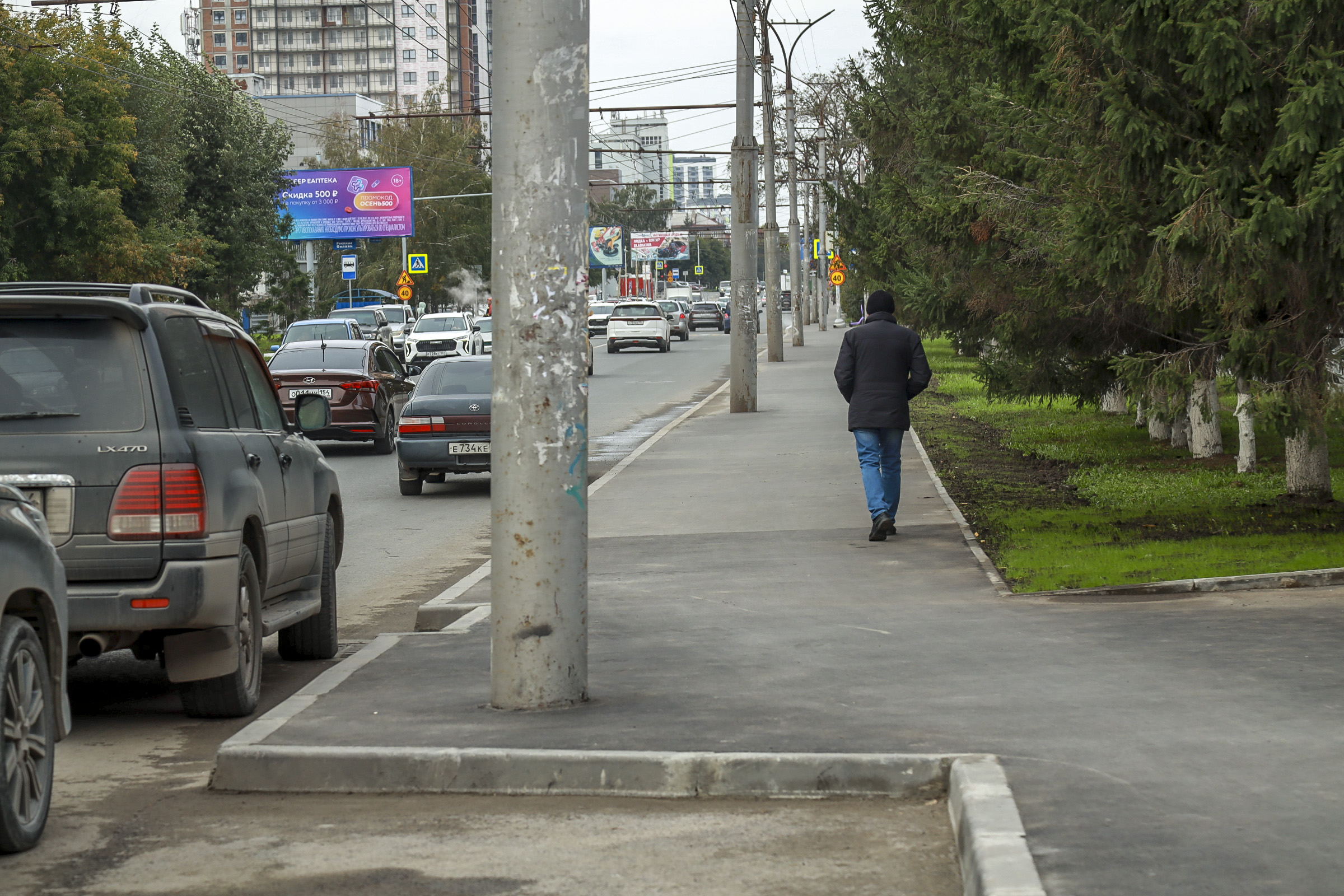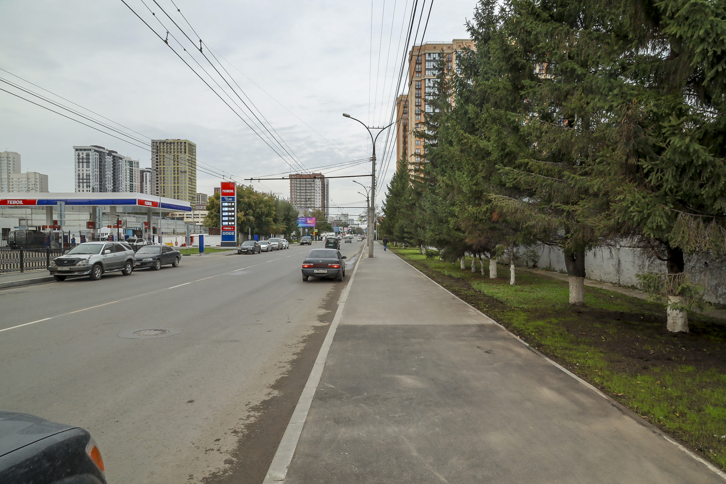 Подрядчик уложил на дорогу два слоя покрытия, обновил тротуар, поднял смотровые и дождеприёмные колодцы до оптимального уровня, отремонтировал трамвайные переезды. Также заменил недостающие бордюры, дорожные знаки, установил пешеходные ограждения.