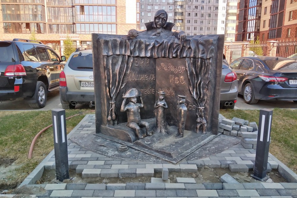 Первый бюст этого выдающегося прозаика и драматурга установили в 2009 году на аллее Красного проспекта вблизи его пересечения с улицей Гоголя. Чугунную скульптуру изготовили в Санкт-Петербурге. Автор — Александр Бортник.