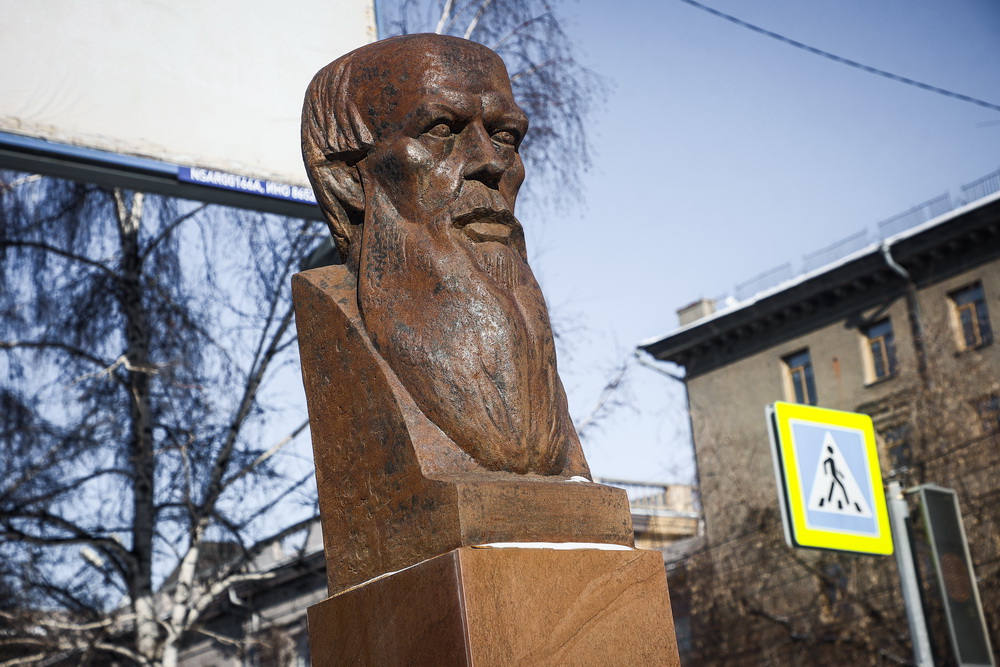 Стилистически сдержанный бюст Ф. М. Достоевского находится на аллее Красного проспекта неподалёку от улицы, носящей имя писателя. Изваяние отлито из чугуна в Санкт-Петербурге по проекту скульптора Александра Бортника. Открыли памятник 27 июня 2008 года.