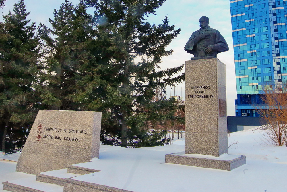 Памятник украинскому поэту и художнику открыли на пересечении улиц Кирова и Шевченко 29 сентября 2015 года. Комплекс представляет собой гранитный постамент высотой 2,5 метра, на котором установлен бронзовый бюст. На размещённой отдельно вертикальной гранитной плите приведена цитата на украинском языке: «Обнимемся же, братья мои. Молю вас, умоляю».