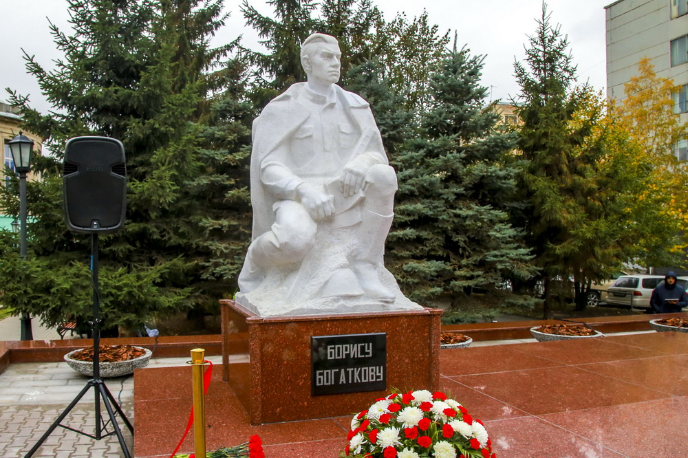 Фигура новосибирского поэта, погибшего на фронте в Великую Отечественную войну, расположена на углу улиц Кирова и Бориса Богаткова в Октябрьском районе. Открыли мемориал 2 июля 1977 года — к 35-летию формирования 22-й гвардейской Сибирской добровольческой дивизии, где служил герой. Средства на сооружение памятника молодёжь города заработала на субботниках и воскресниках. Автор изваяния — скульптор Михаил Иванович Меньшиков, тоже участник Великой Отечественной.