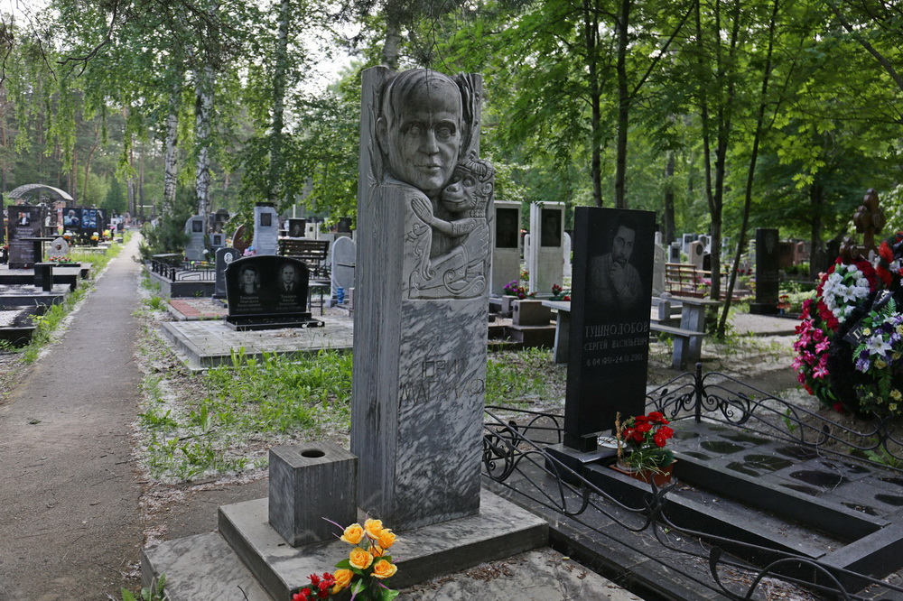 На Заельцовском кладбище также похоронен новосибирский писатель и поэт Ю. М. Магалиф. На его могиле стоит памятник, созданный скульптором Владимиром Грачёвым. Тот изобразил автора вместе с его самым известным персонажем — мартышкой Жаконей.