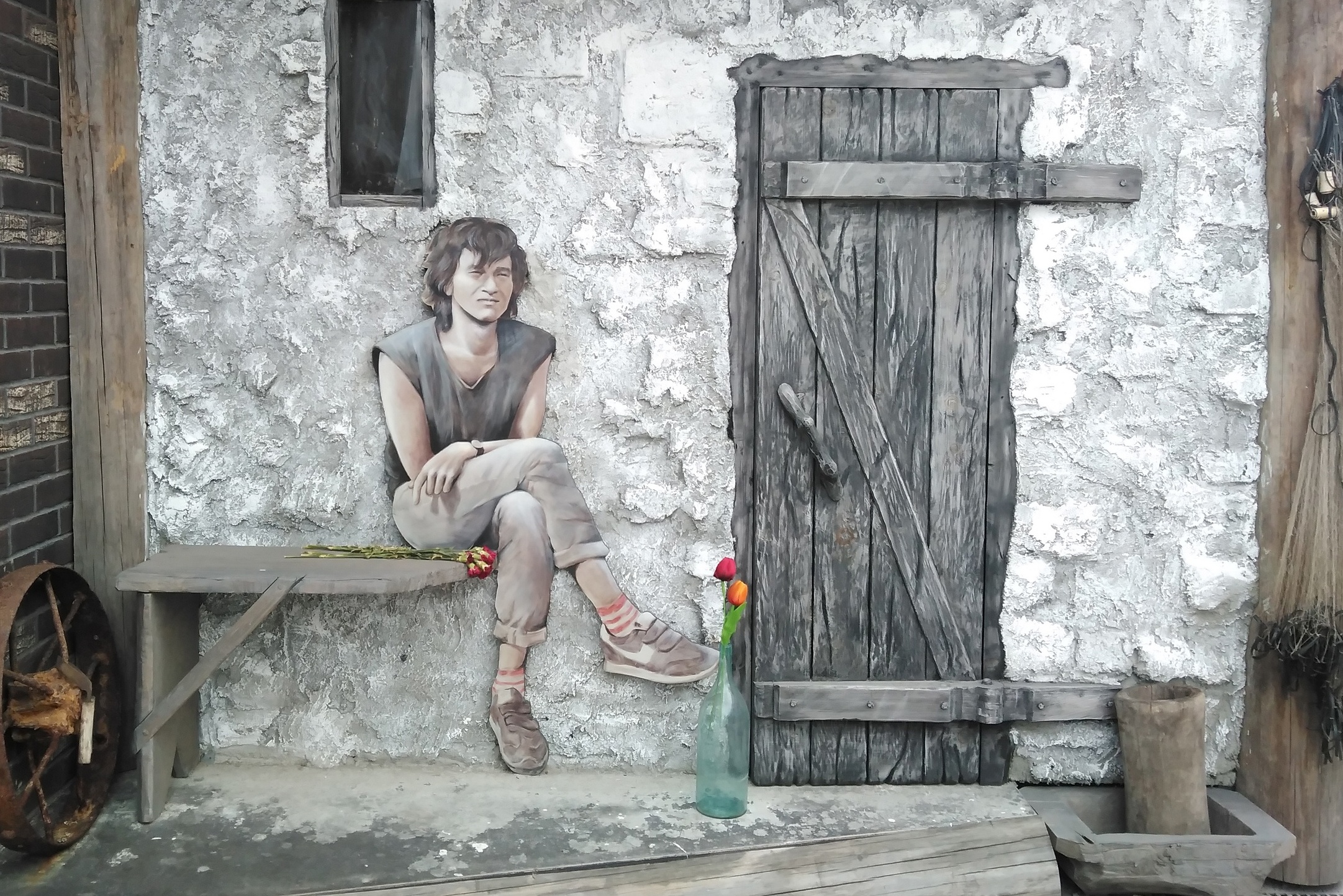 На торцевой стене второго ангара изображены кадры из художественного фильма «Игла», снятого в 1988 году.