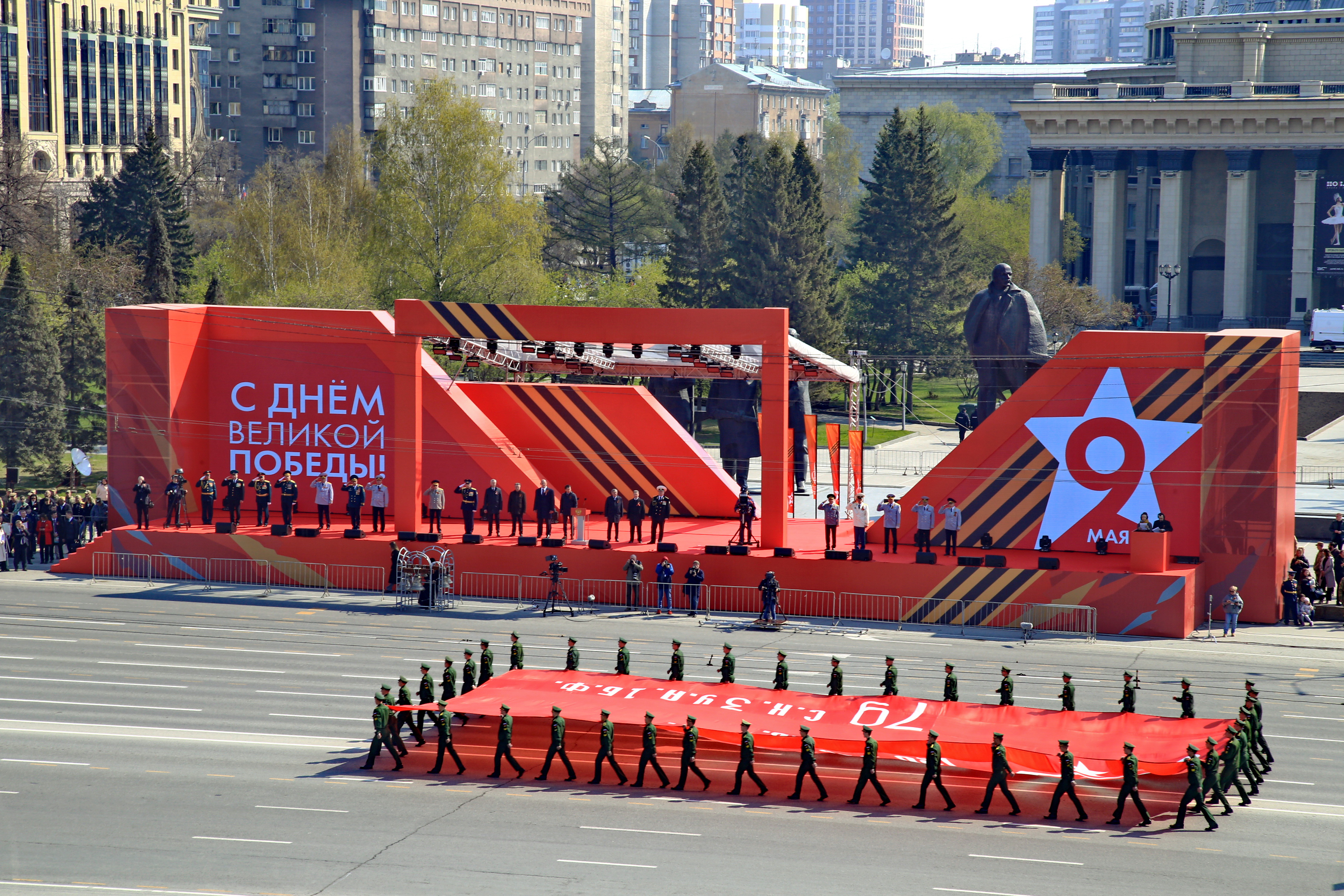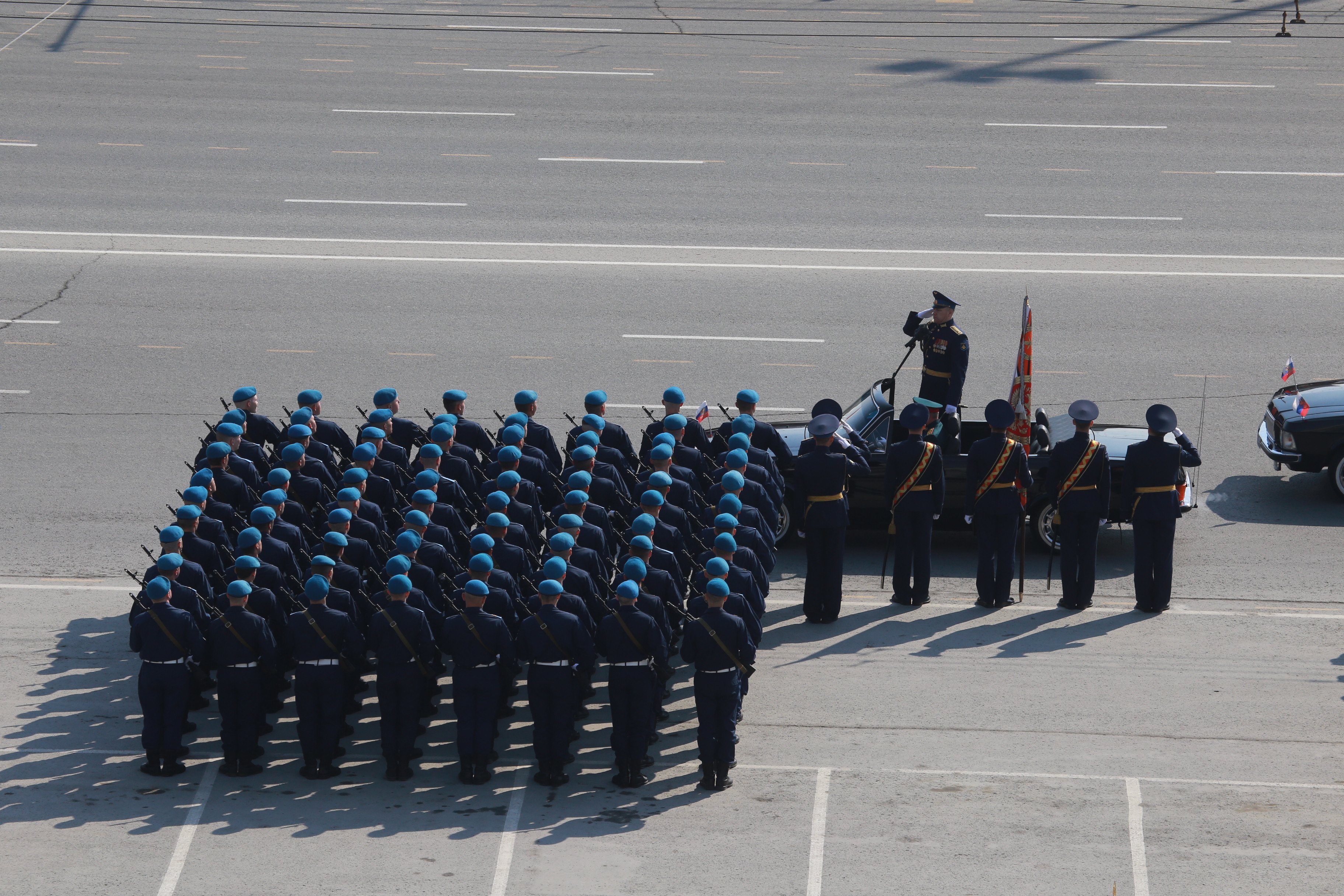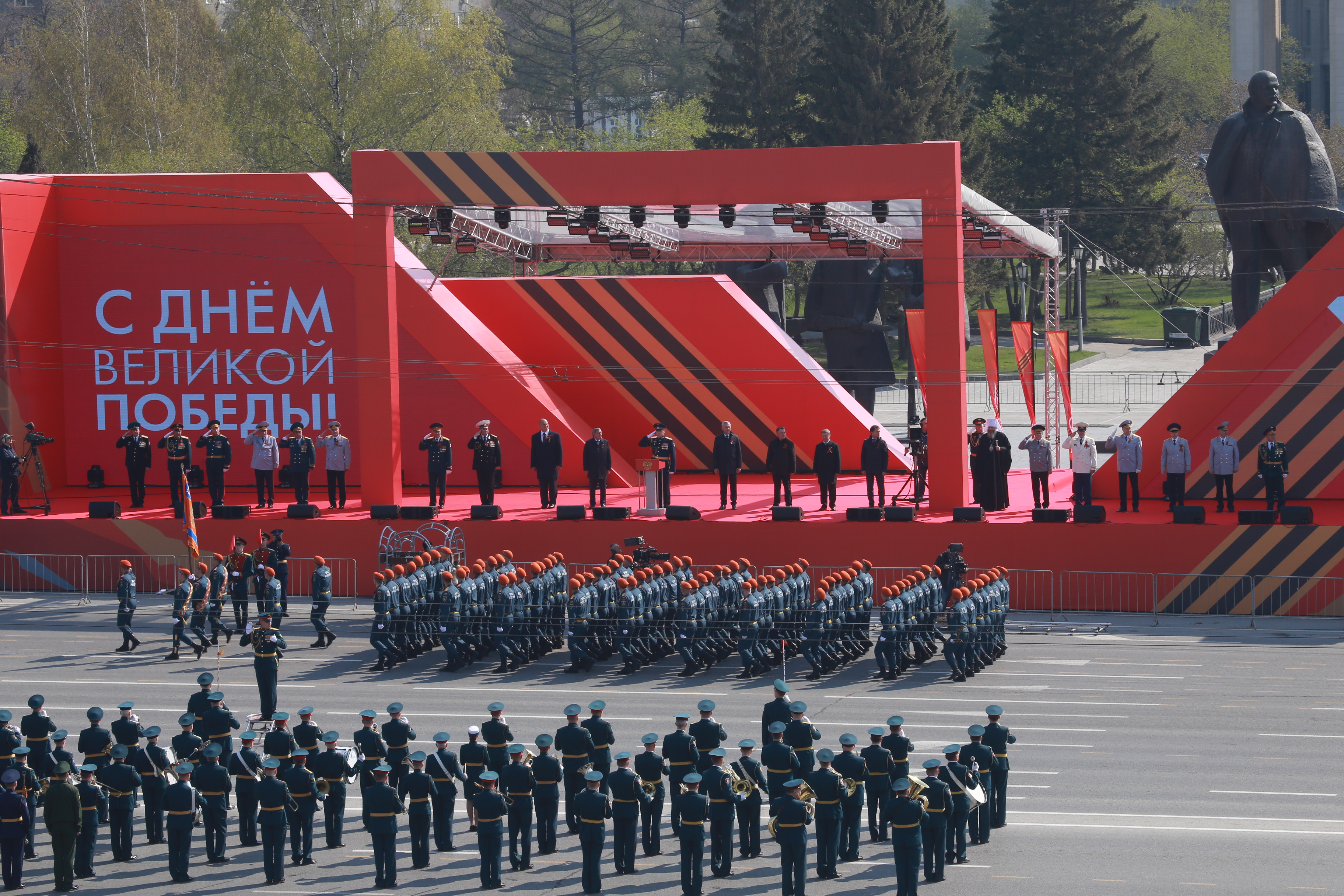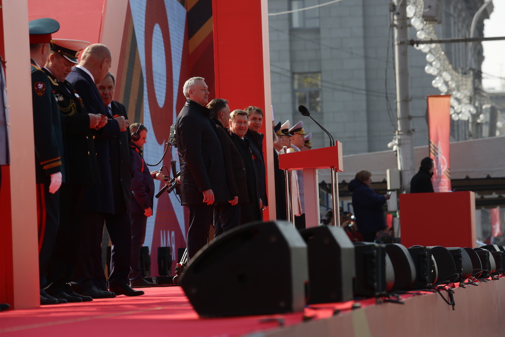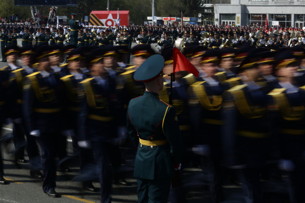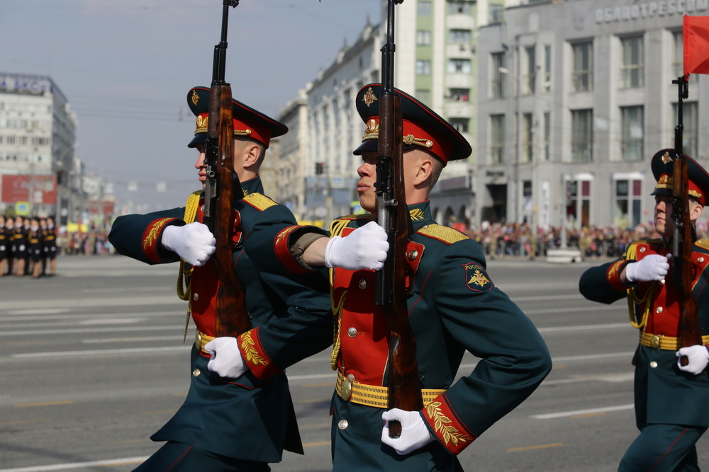 В параде, посвящённом 77-й годовщине Победы в Великой Отечественной войне, приняли участие армия, курсанты, силовики, спасатели, кадеты — всего около 2000 человек. Они прошагали мимо специально сооружённой перед памятником Ленину трибуны.