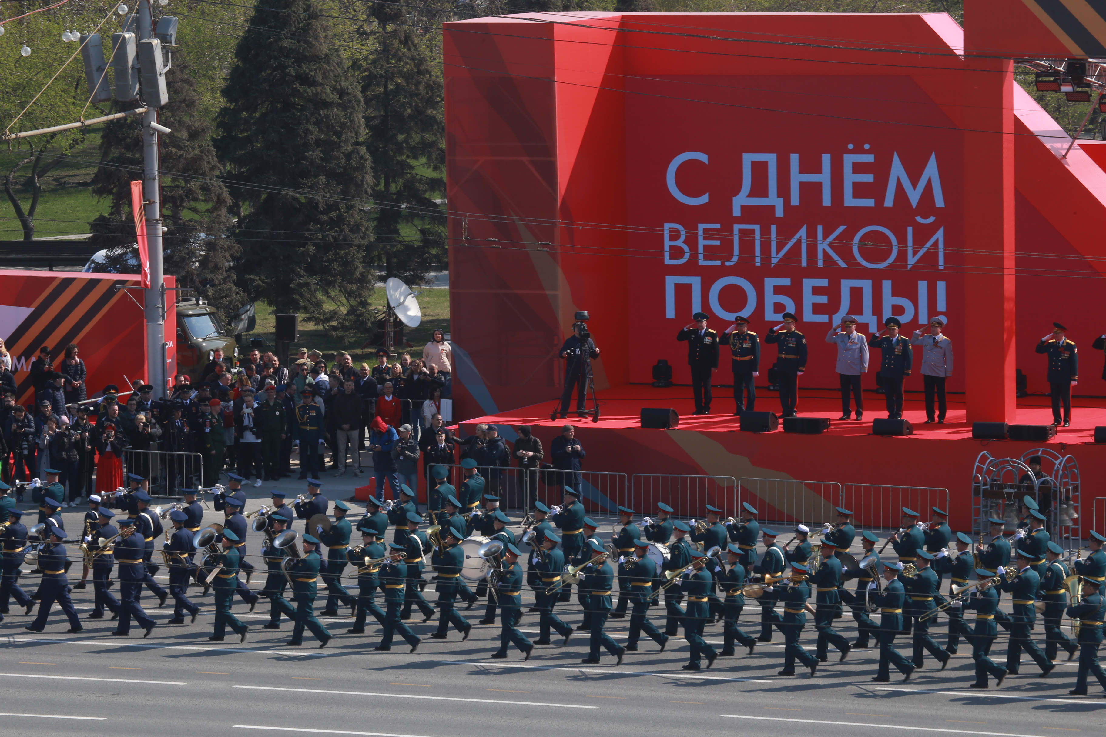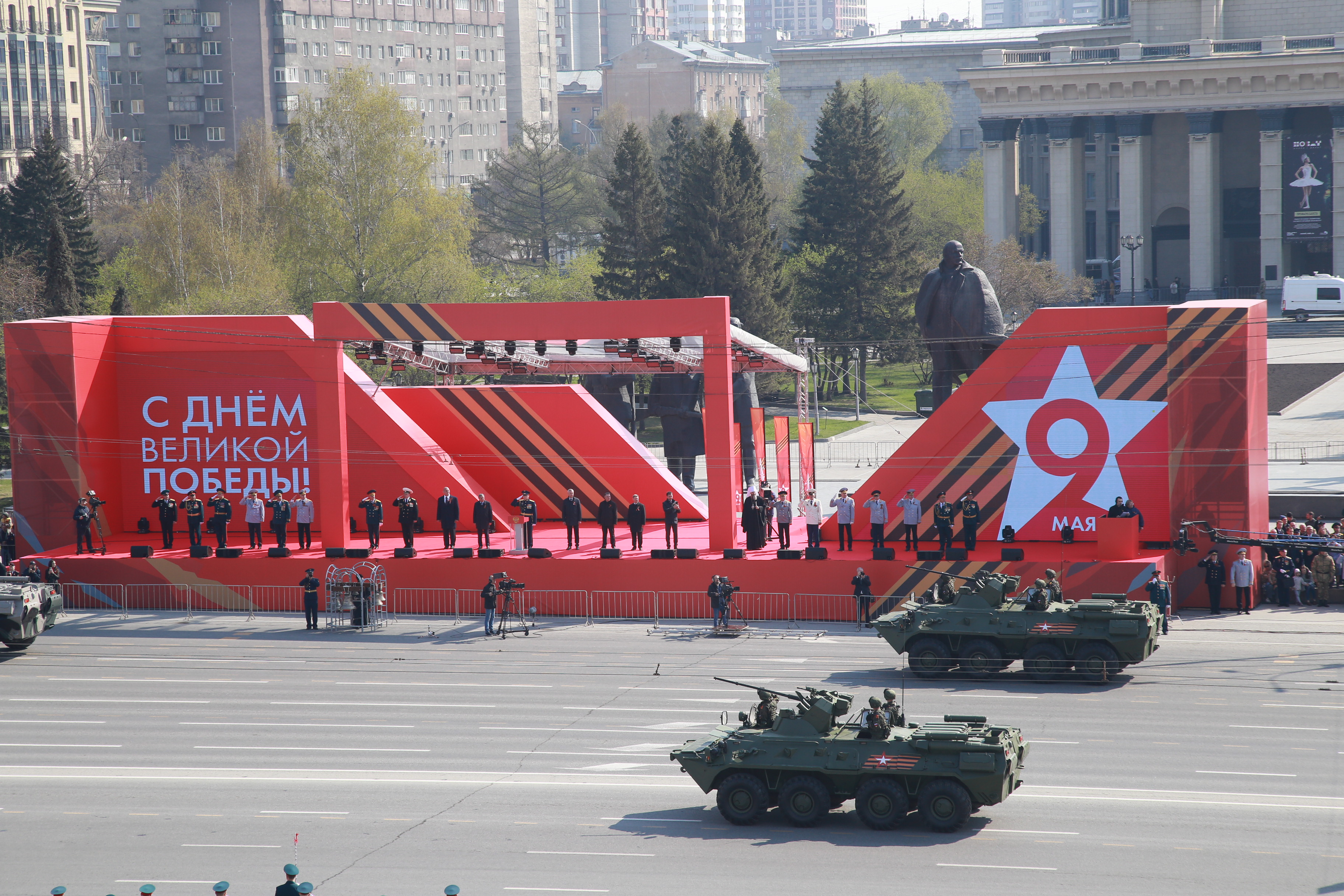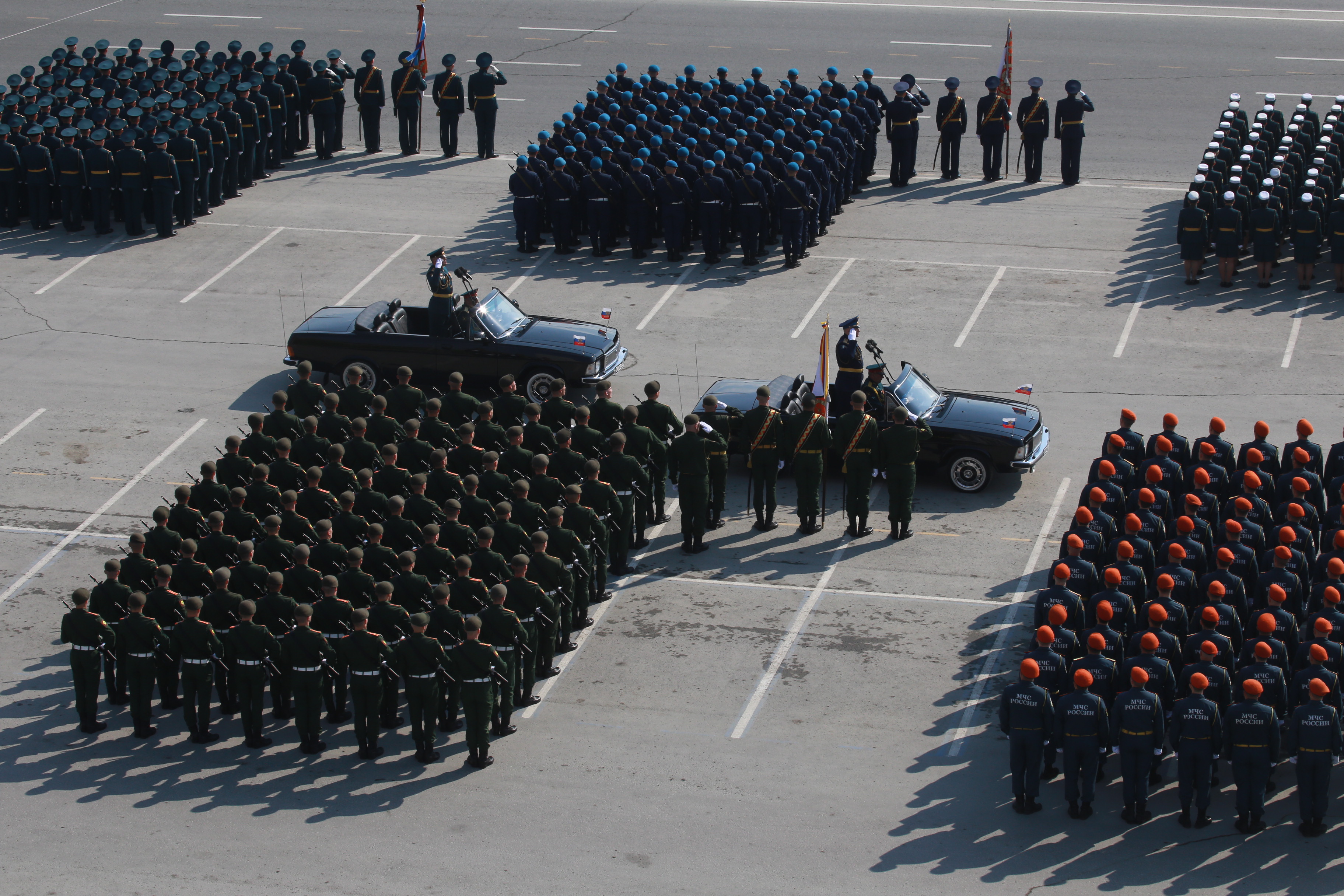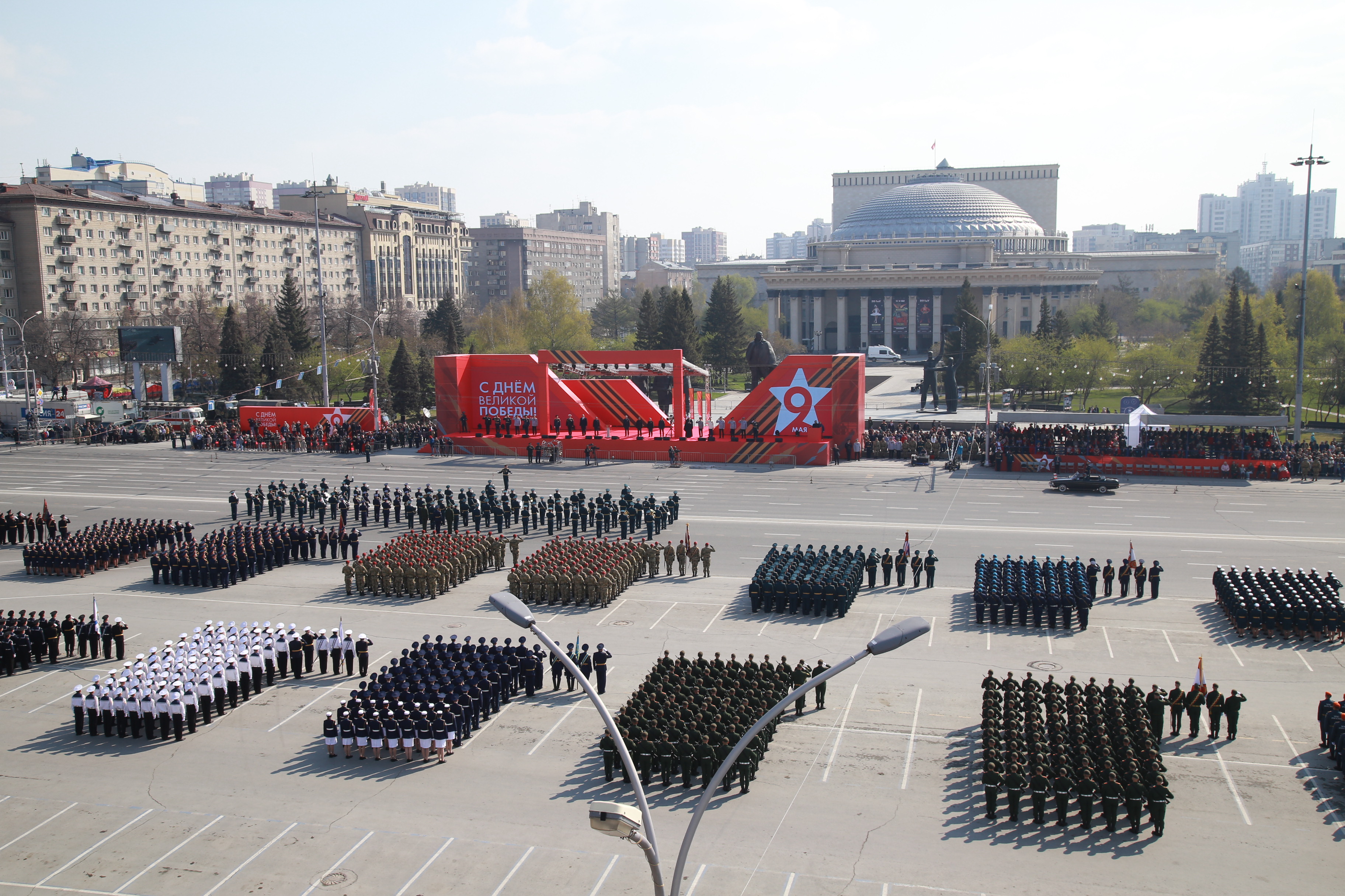 В параде, посвящённом 77-й годовщине Победы в Великой Отечественной войне, приняли участие армия, курсанты, силовики, спасатели, кадеты — всего около 2000 человек. Они прошагали мимо специально сооружённой перед памятником Ленину трибуны.