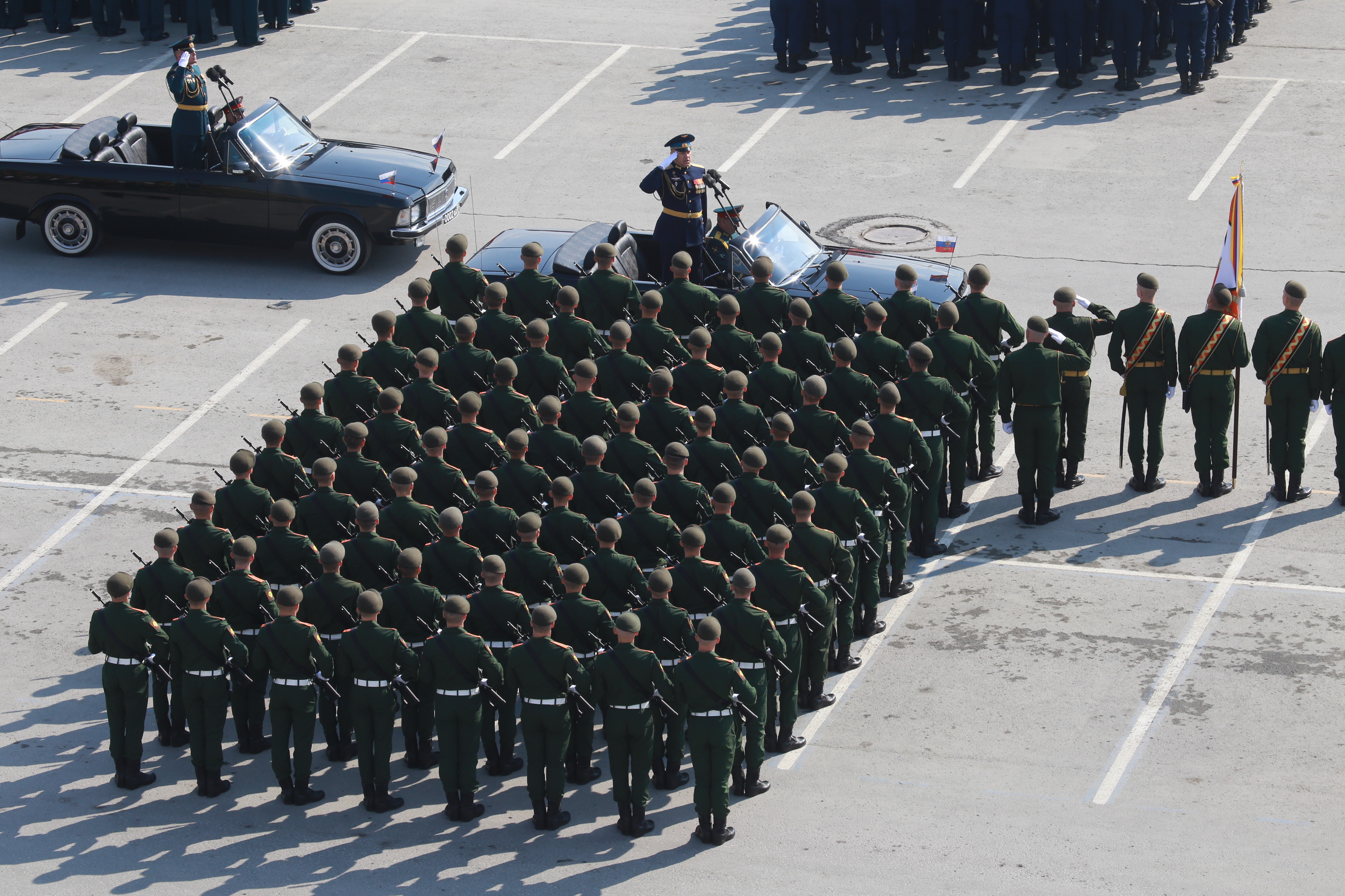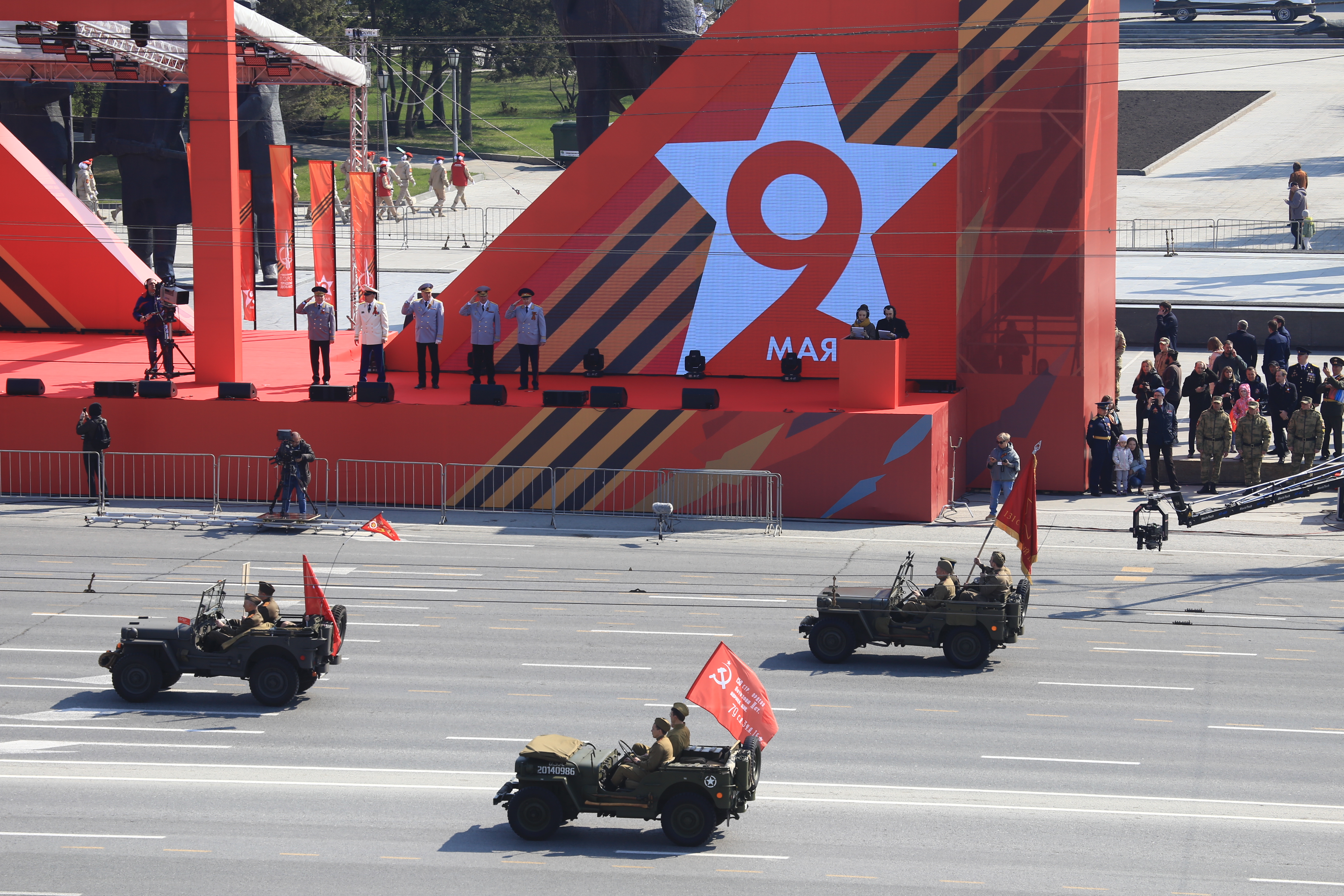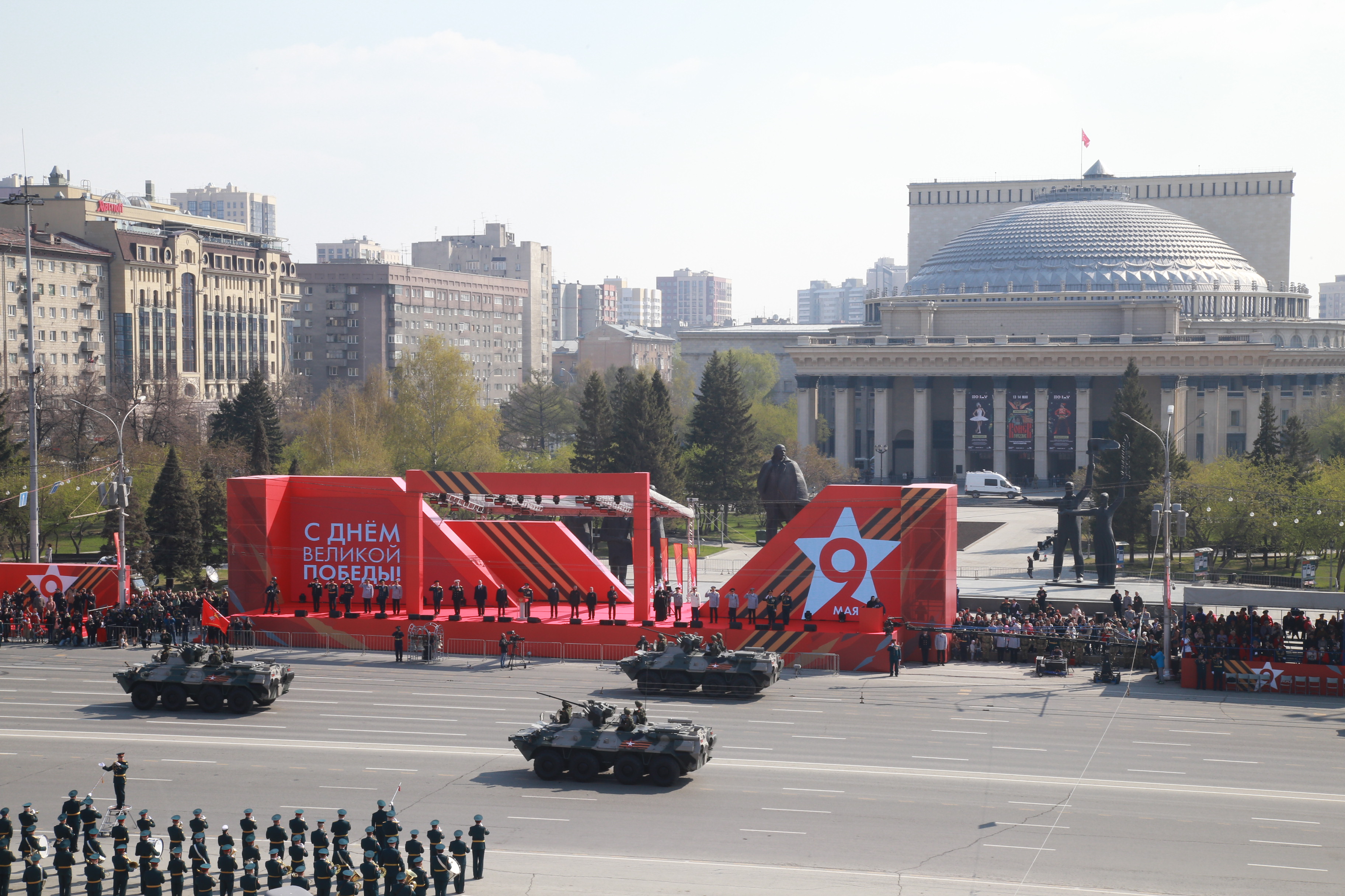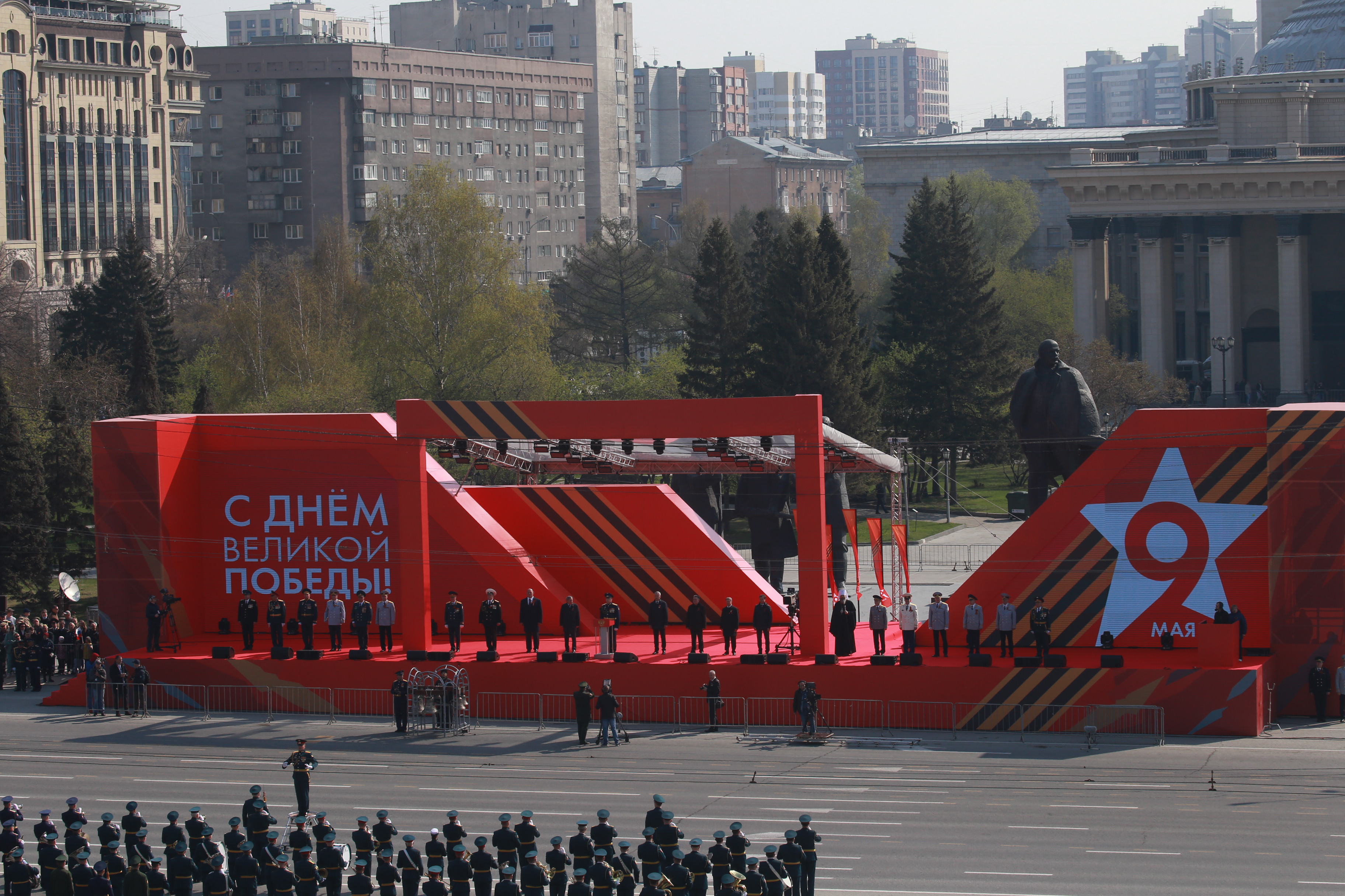 В параде, посвящённом 77-й годовщине Победы в Великой Отечественной войне, приняли участие армия, курсанты, силовики, спасатели, кадеты — всего около 2000 человек. Они прошагали мимо специально сооружённой перед памятником Ленину трибуны.