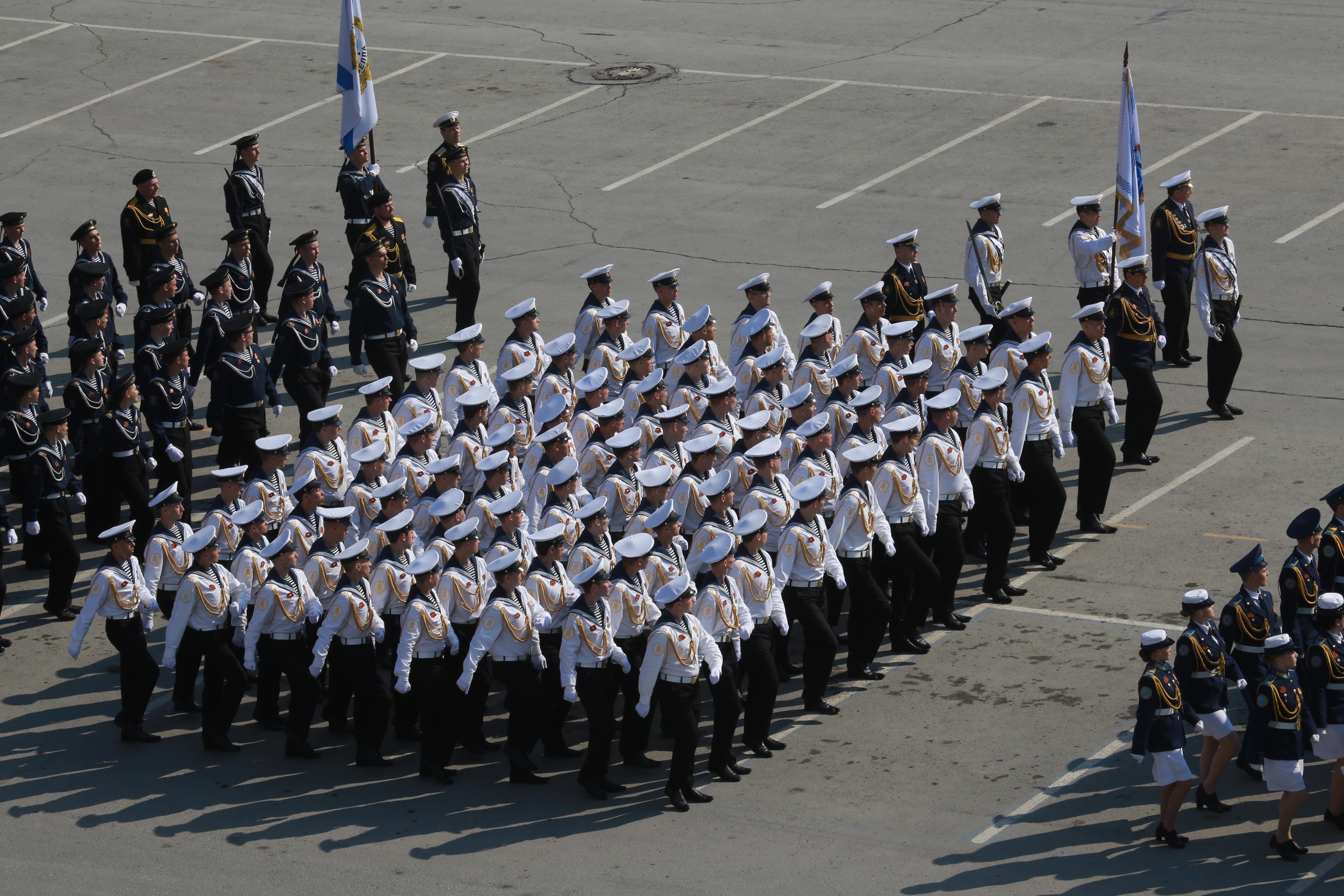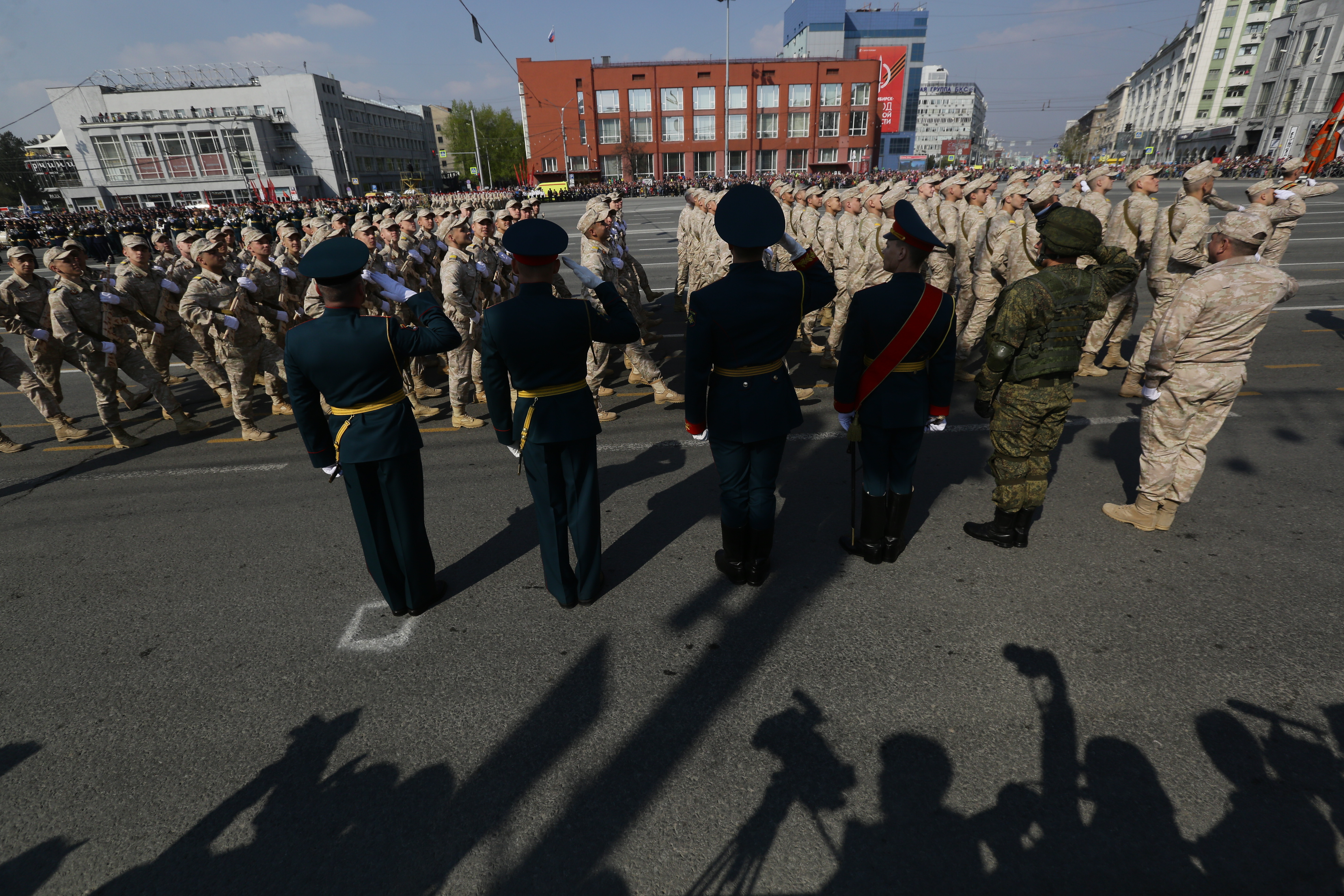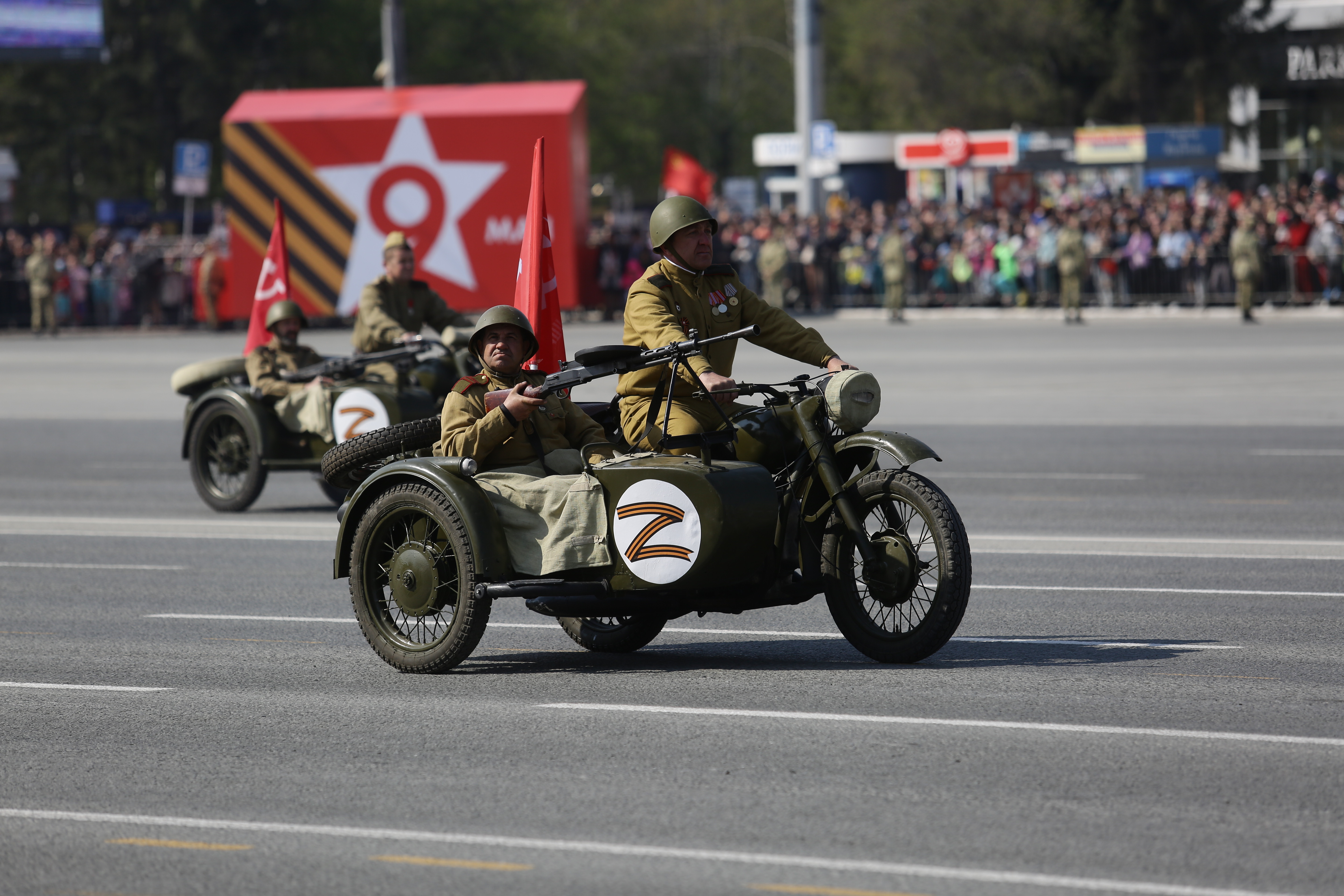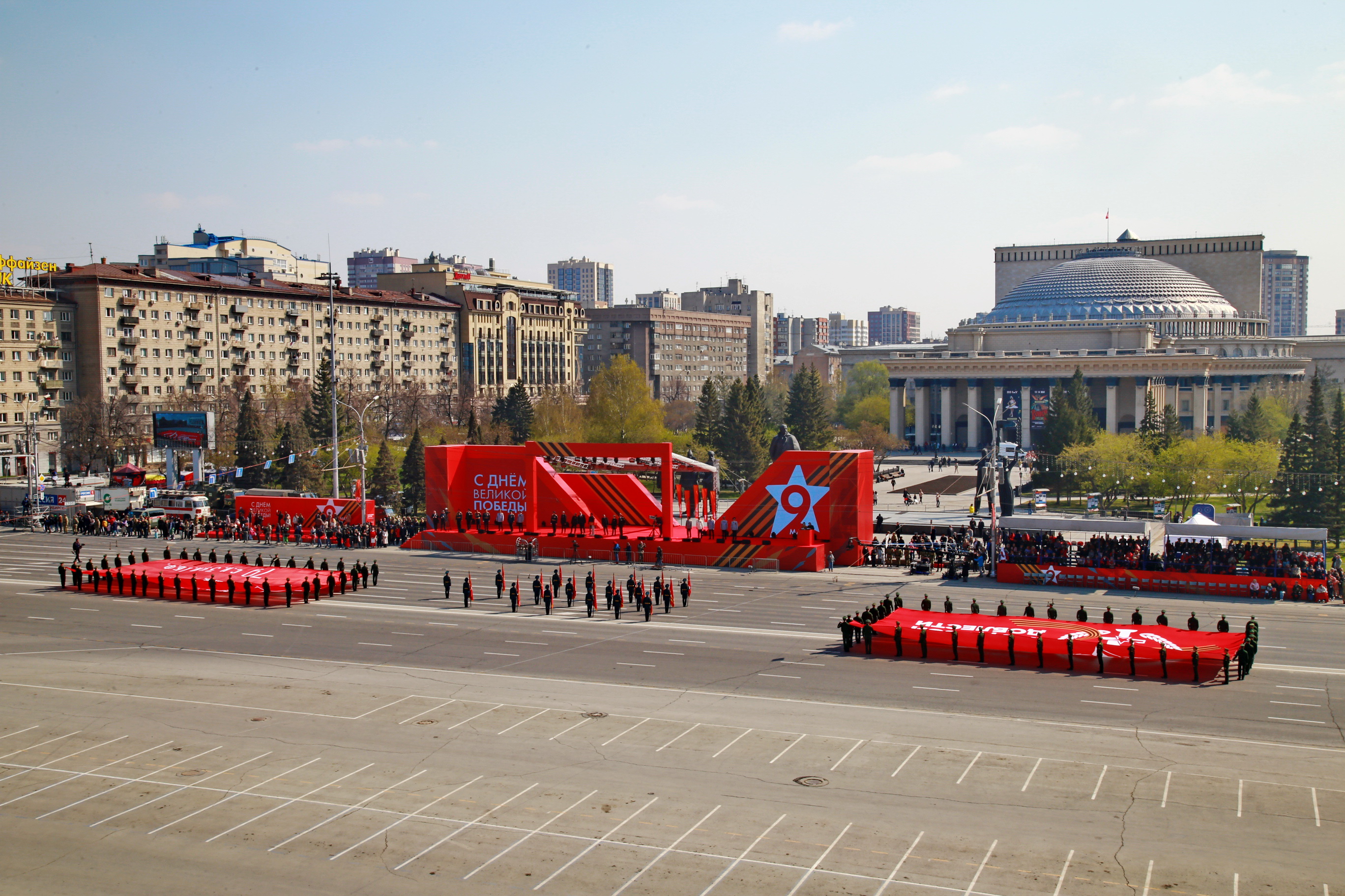 В параде, посвящённом 77-й годовщине Победы в Великой Отечественной войне, приняли участие армия, курсанты, силовики, спасатели, кадеты — всего около 2000 человек. Они прошагали мимо специально сооружённой перед памятником Ленину трибуны.