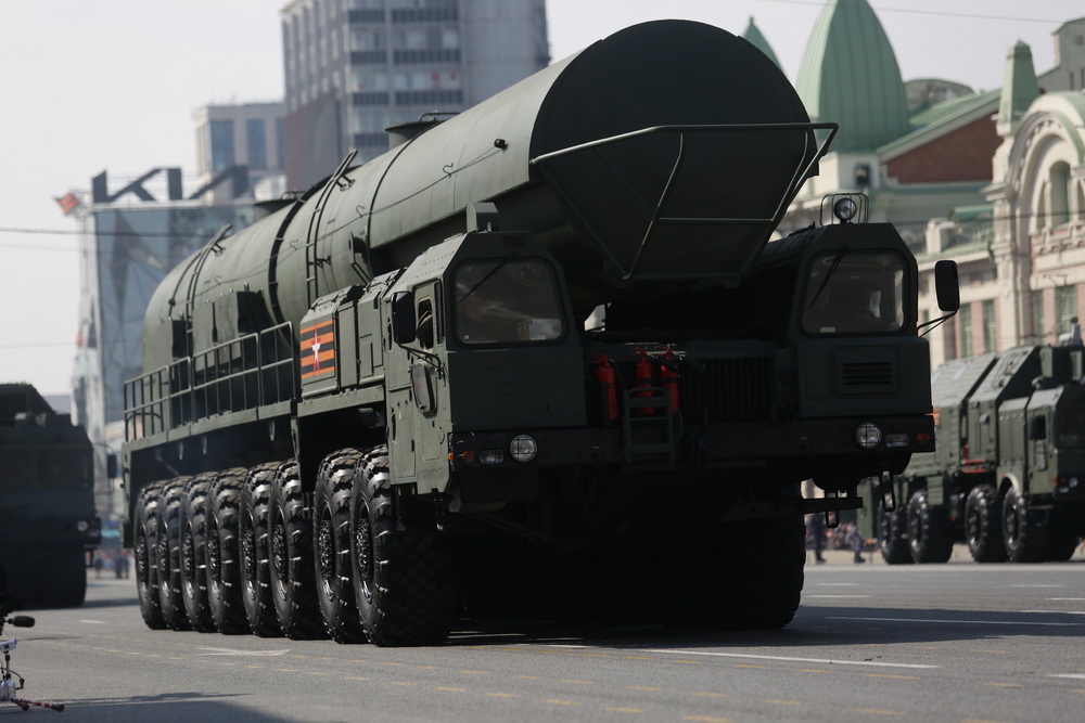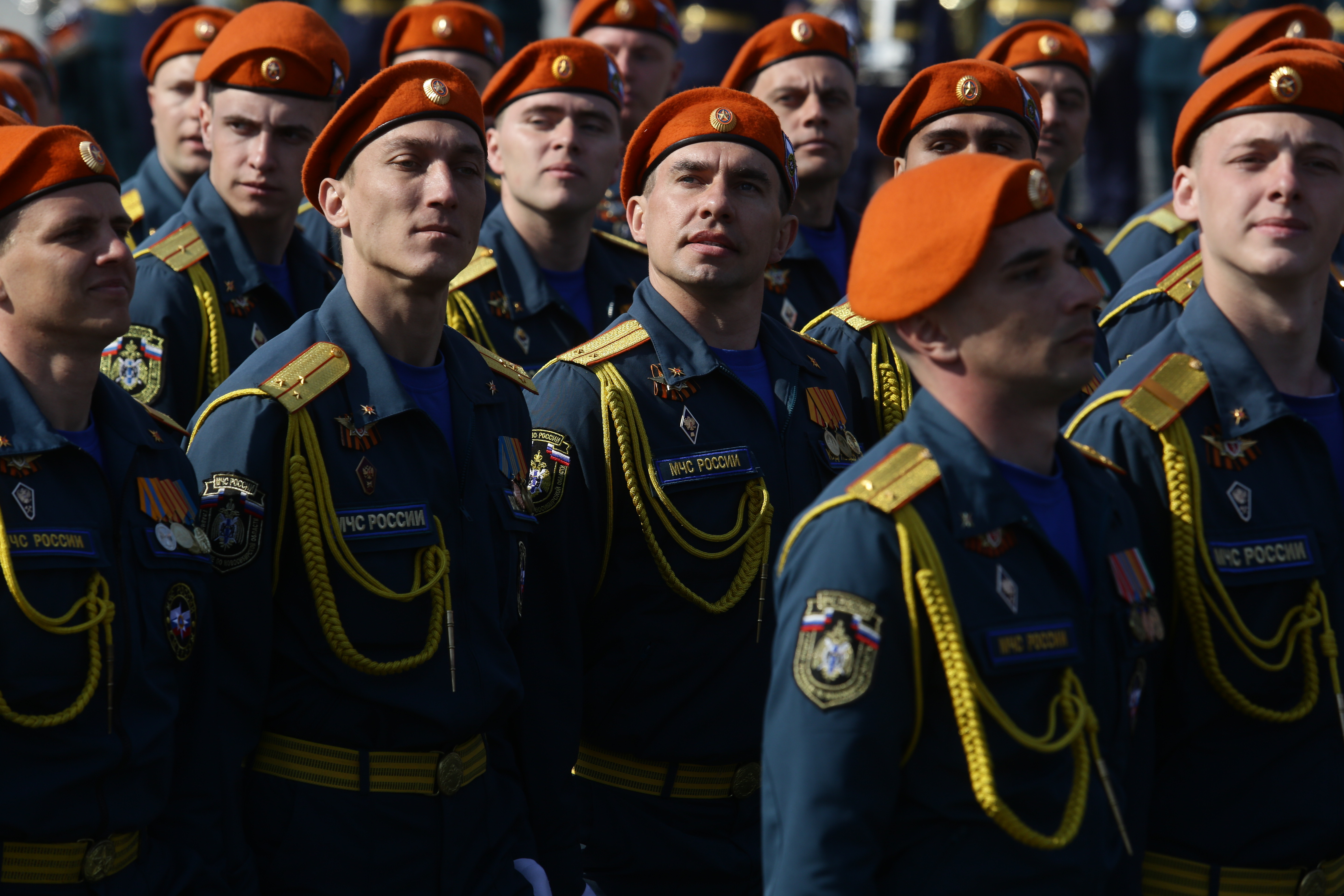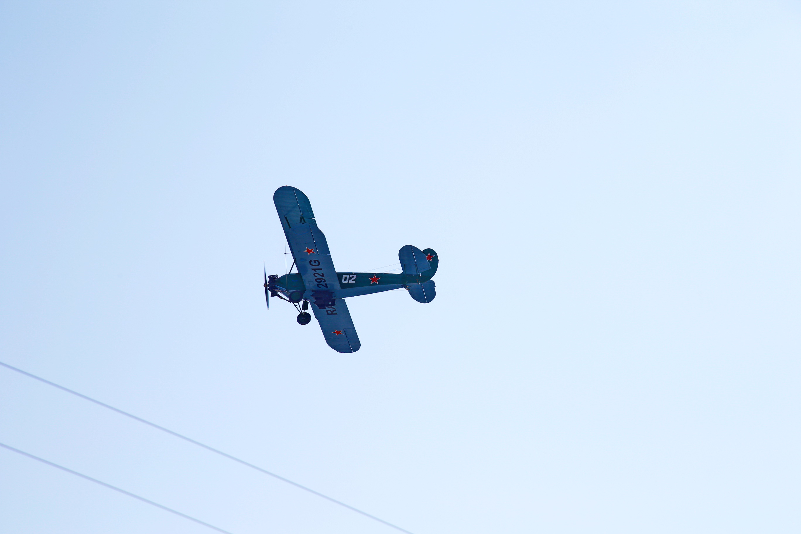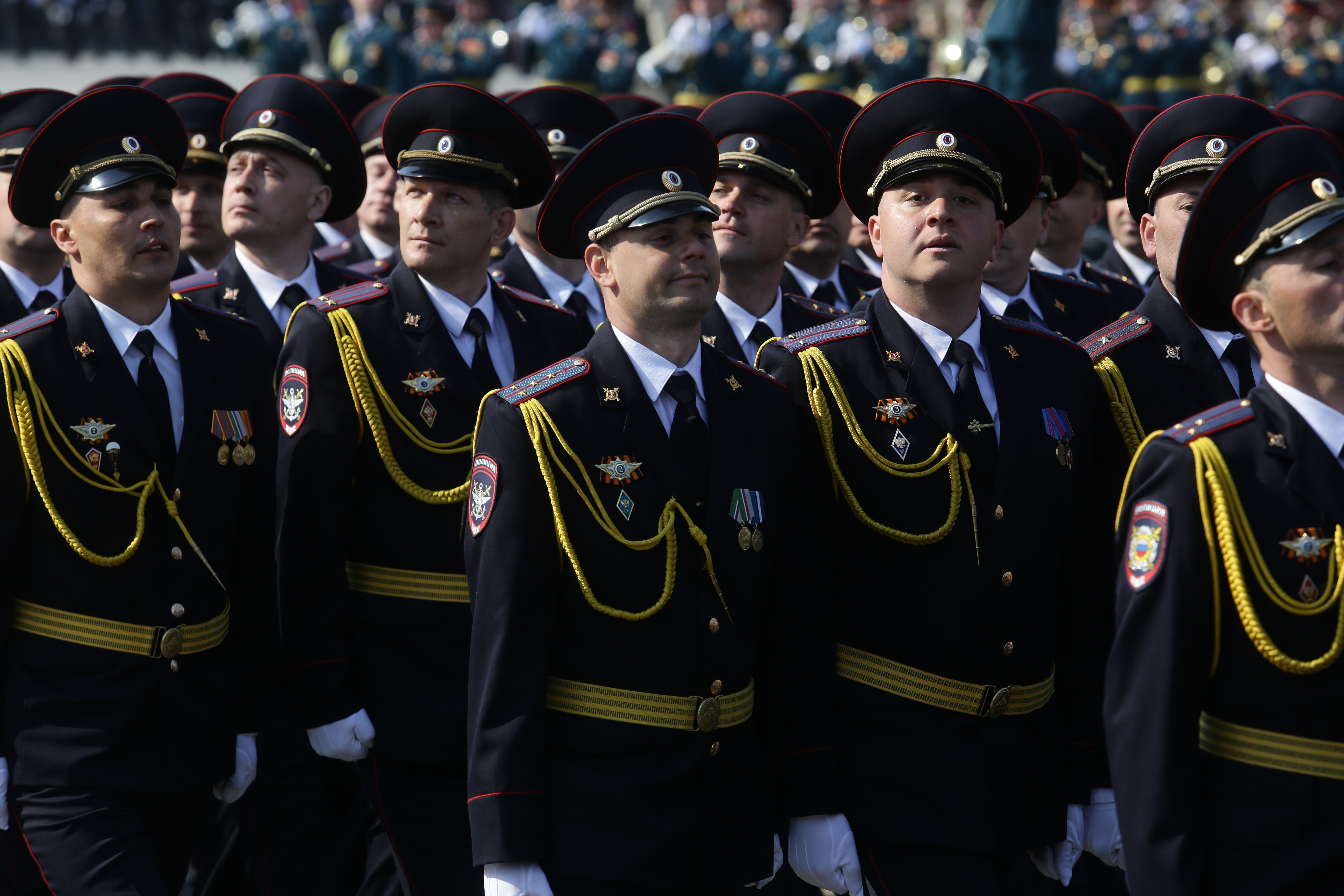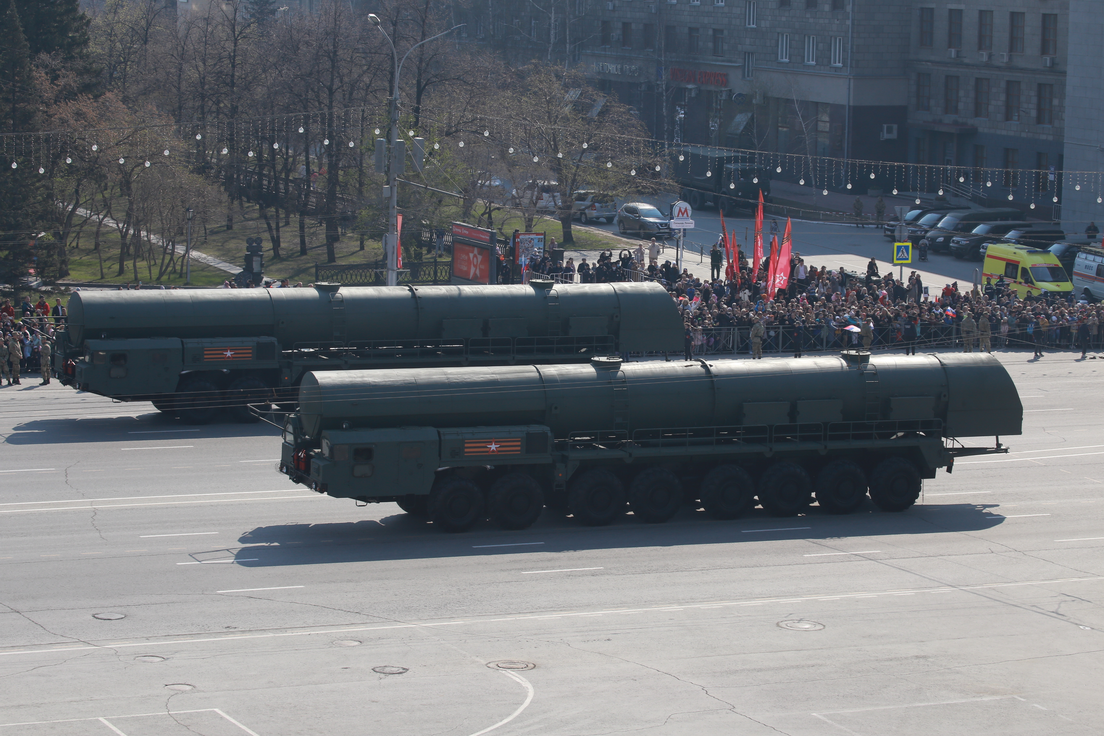 Следом по площади поехала военная техника — вначале отреставрированный танк Т-34, затем бронеавтомобили «Тигр», бронетранспортёры, зенитные комплексы С-400, «Ярс», «Град» и, конечно, легендарная «Катюша». В небе пролетел современный истребитель, а также бипланы, с одного из которых над площадью разбросали листовки.