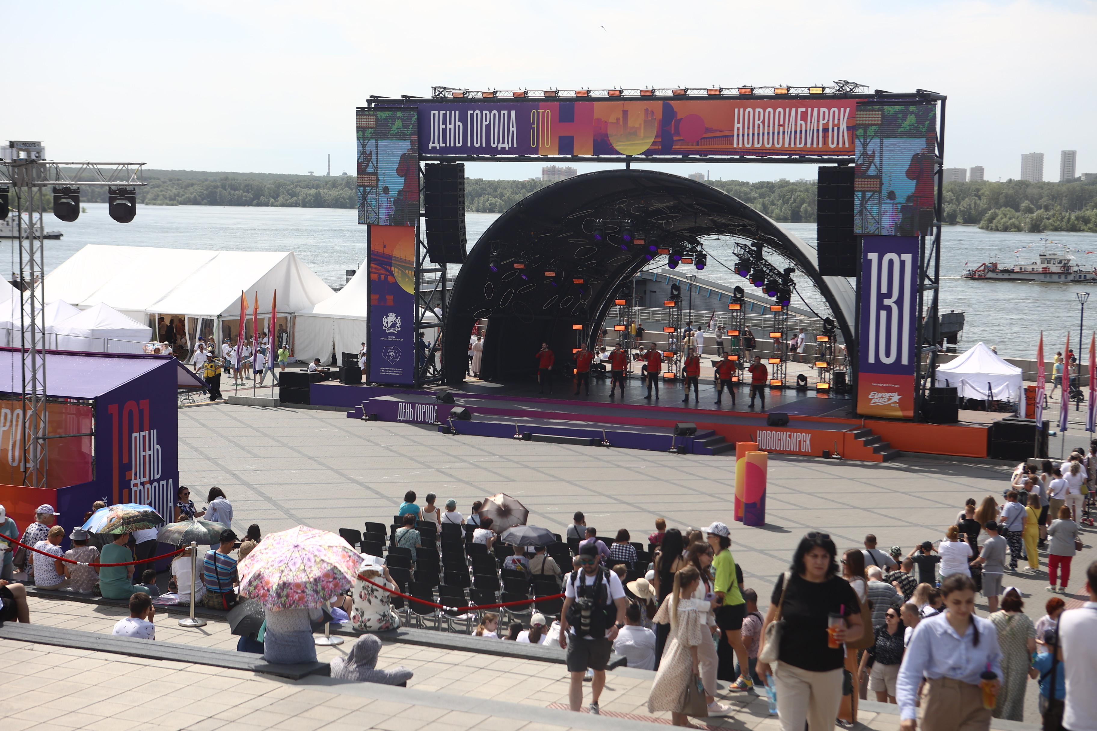 Новосибирску — 131 год. День рождения празднуют на нескольких площадках, главной из которых стала Михайловская набережная. Собравшихся поздравили первые лица области и города, а также творческие коллективы.