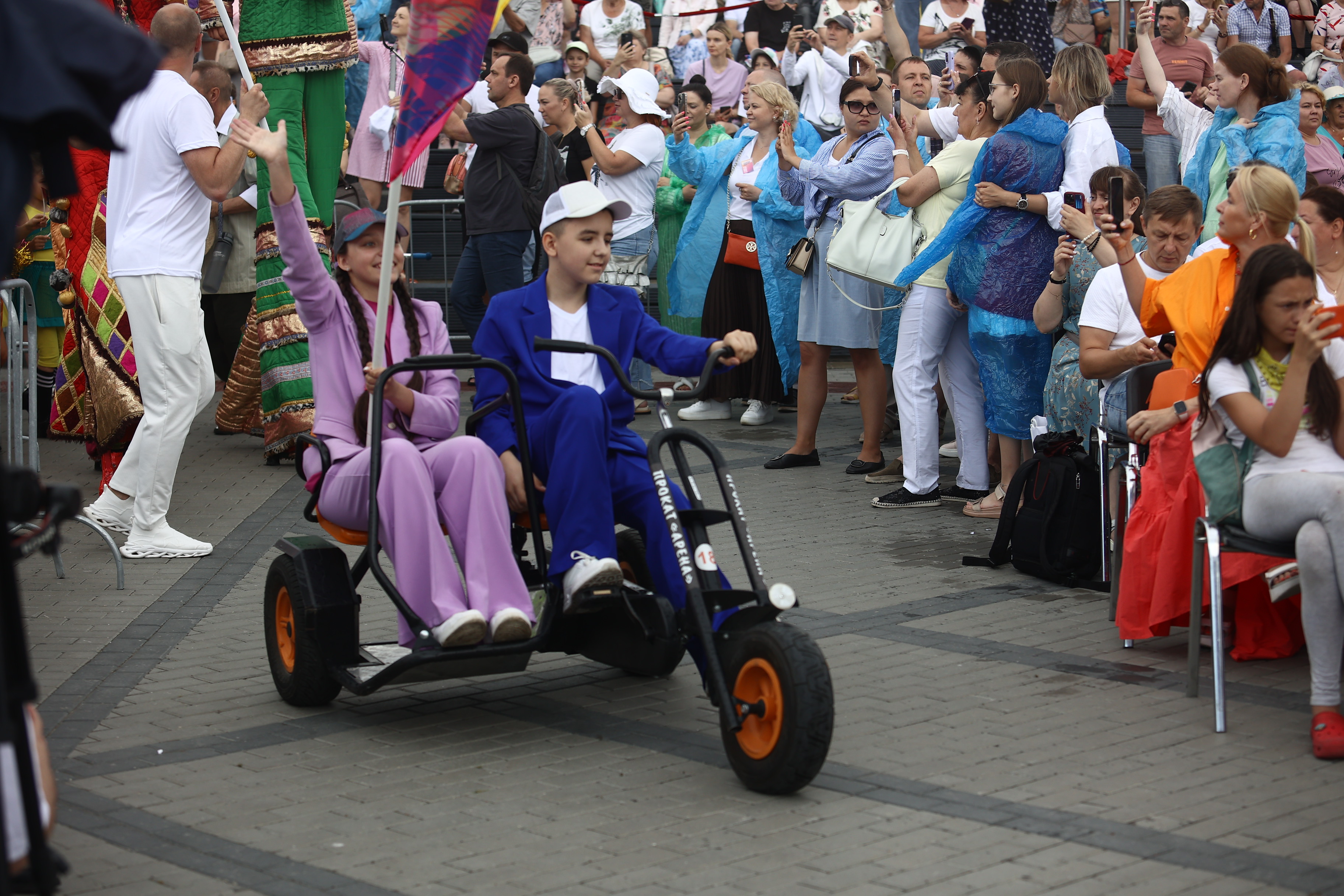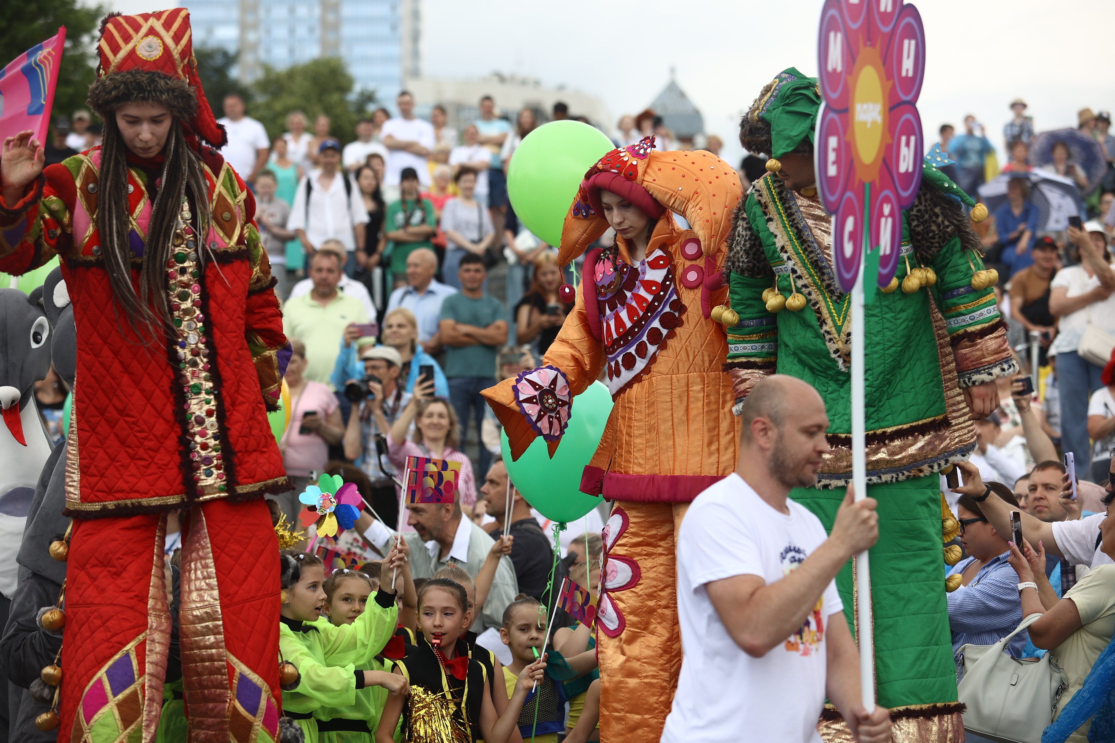 Артисты сменяют друг друга, как калейдоскоп: хореография, детский хор, костюмированный выход, живая музыка. После творческого приветствия к горожанам обращается мэр Максим Кудрявцев.