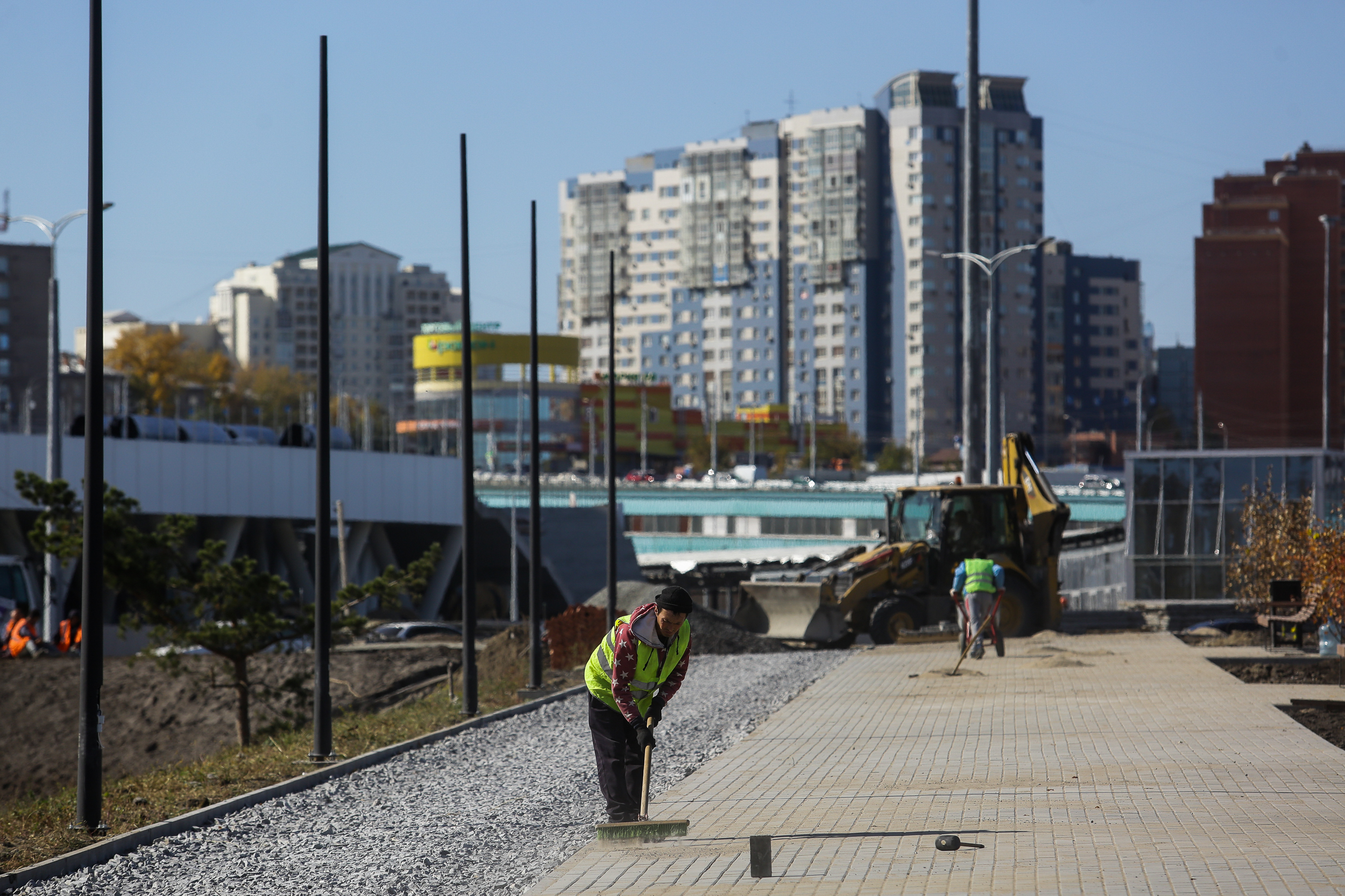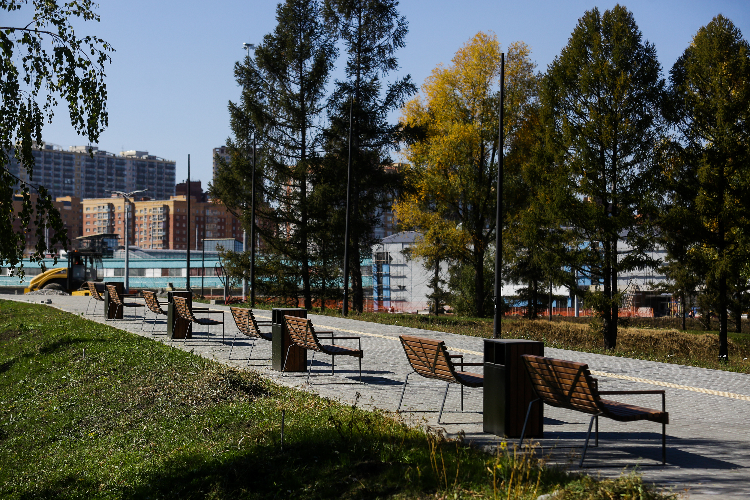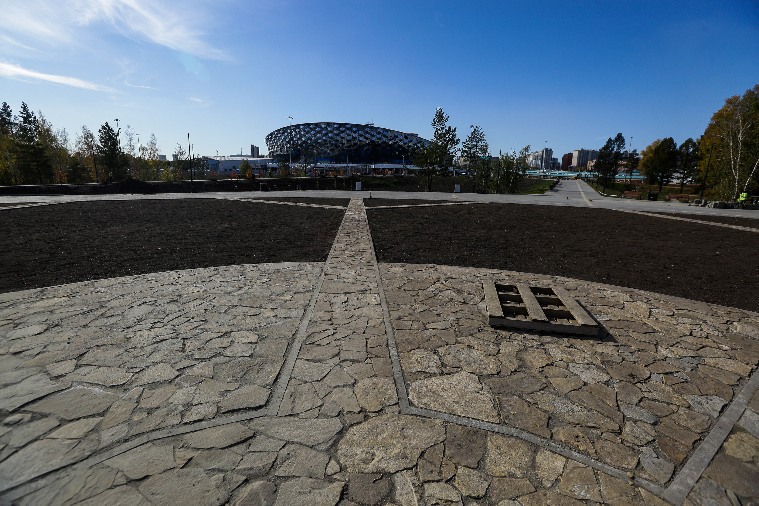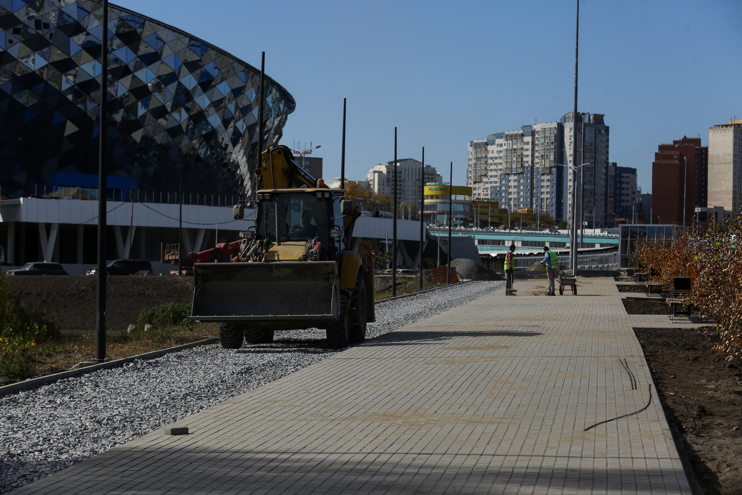 Намеченный на 30 сентября ввод парка «Арена» на левом берегу рядом с новым ЛДС отложили. Сейчас рабочие обустраивают парковки и дорожки, прокладывают кабели освещения, высаживают многолетники, деревья и кустарники. Уже установили часть фонарей, скамейки и урны, оборудовали смотровую площадку и игровую локацию для детей.