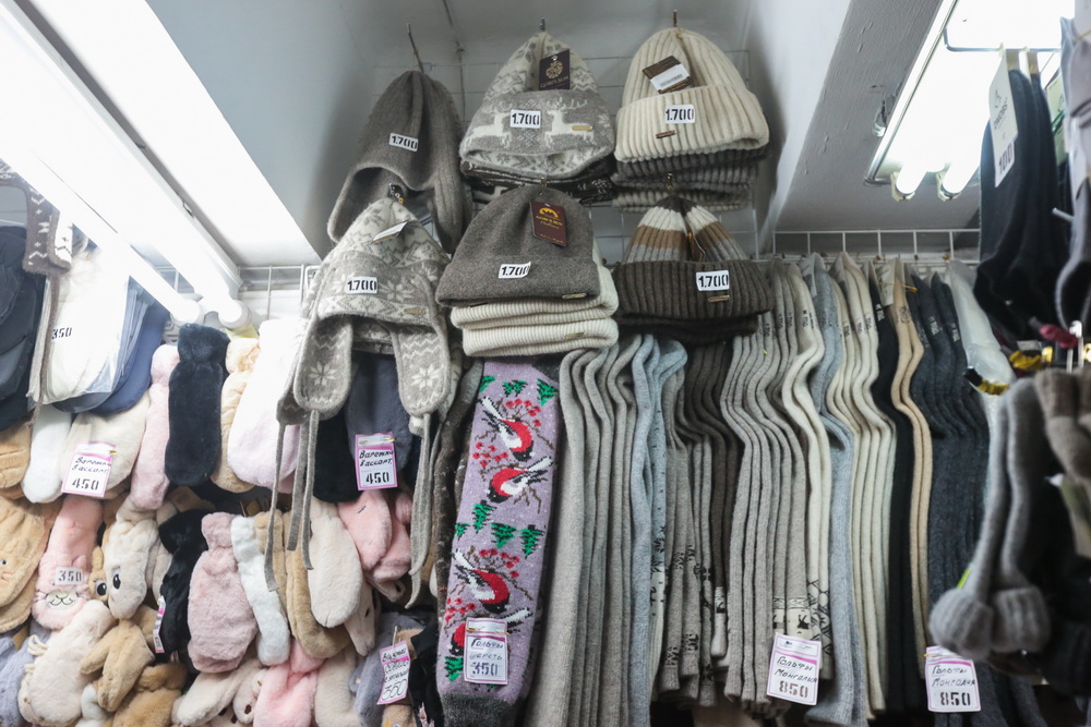 В отдельном ряду стоят изделия из натуральной шерсти — головные уборы, носки, гольфы. Они имеют более сдержанные цветовые решения. Это не мешает им надёжно защищать вас от мороза и ветра.