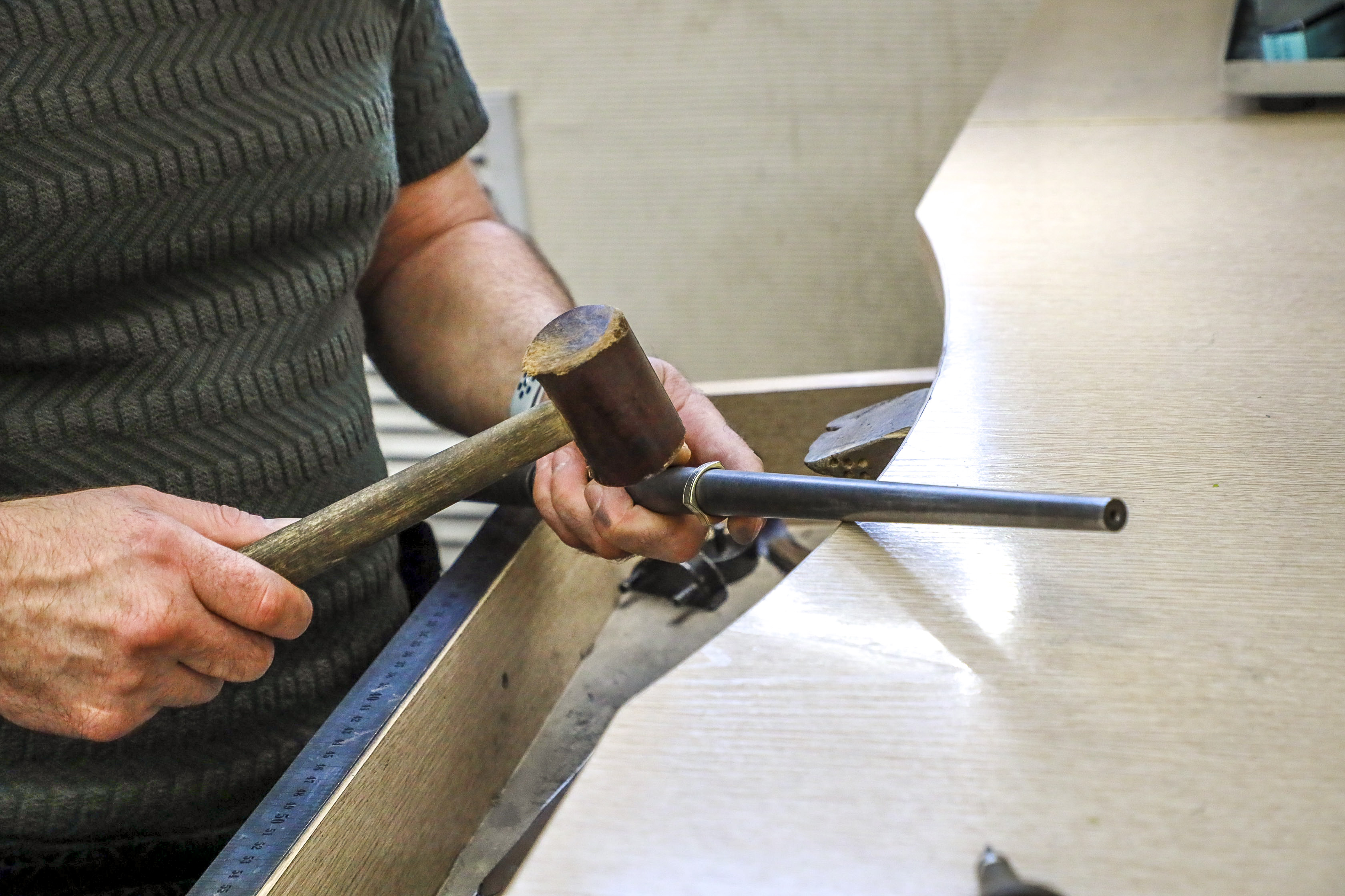 Работа над каждым аксессуаром начинается с разговора. Первая встреча с клиентом длится не меньше часа, а иногда затягивается на два–три. Чем глубже мастер понимает человека и его задумку, тем точнее получается результат.
