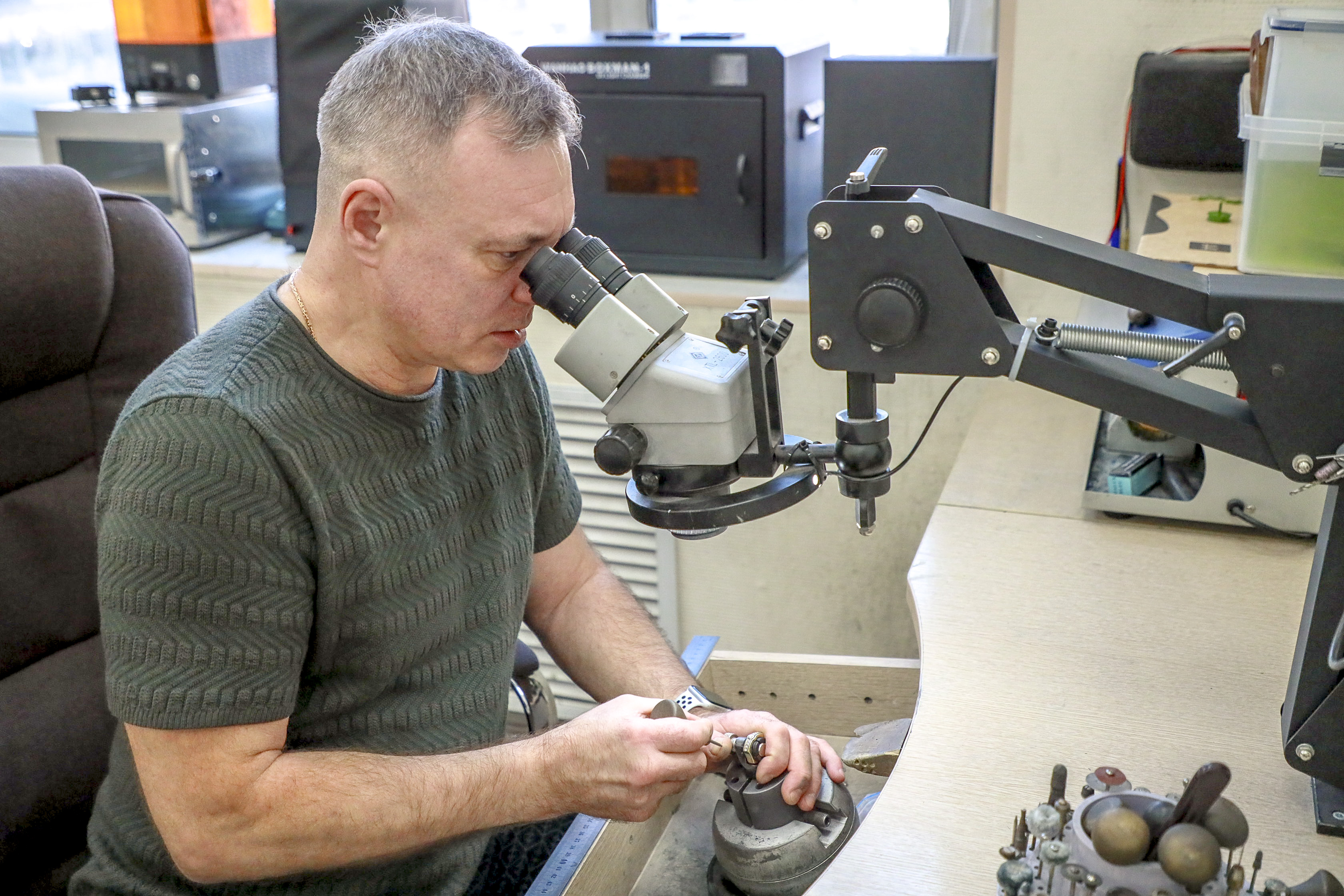 «Я освоил 3D-моделирование и печать. Разобрался, какой принтер подходит именно для меня, подобрал оптимальный материал — фотополимер. Затем научился отливать изделия. Это целая технологическая цепочка: от муфельной печи до вакуумного насоса», — рассказывает мастер.