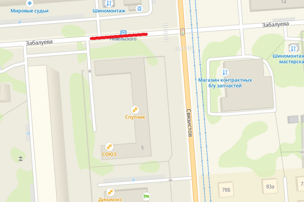 Обслуживающий этот участок автобус №43 продолжит ходить в объезд — по улице Широкой, с правым поворотом на Невельского, далее в маршруте — левый поворот на безымянный проезд в направлении улицы Филатова, затем — улицы Филатова и Забалуева.