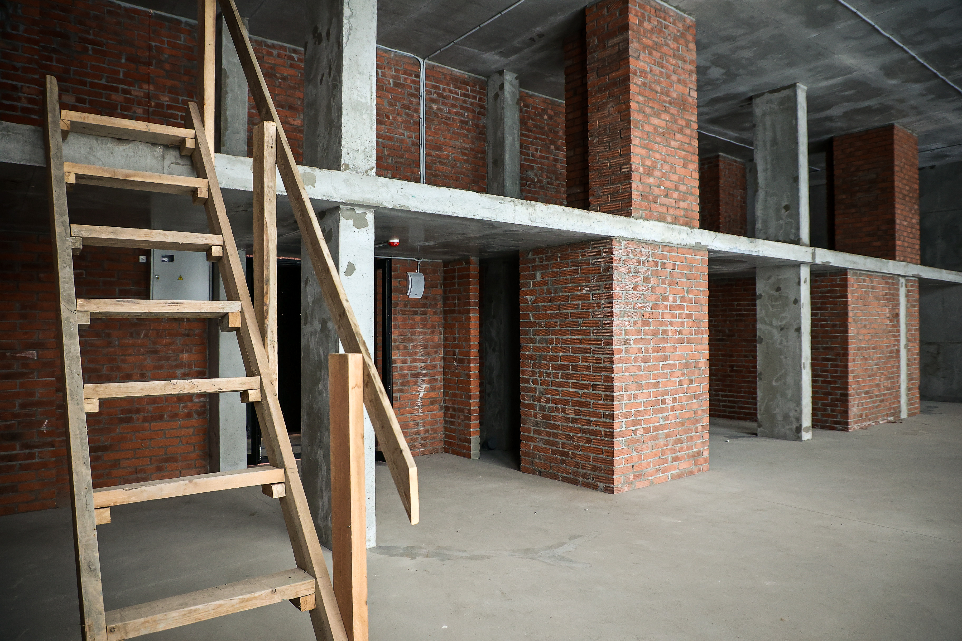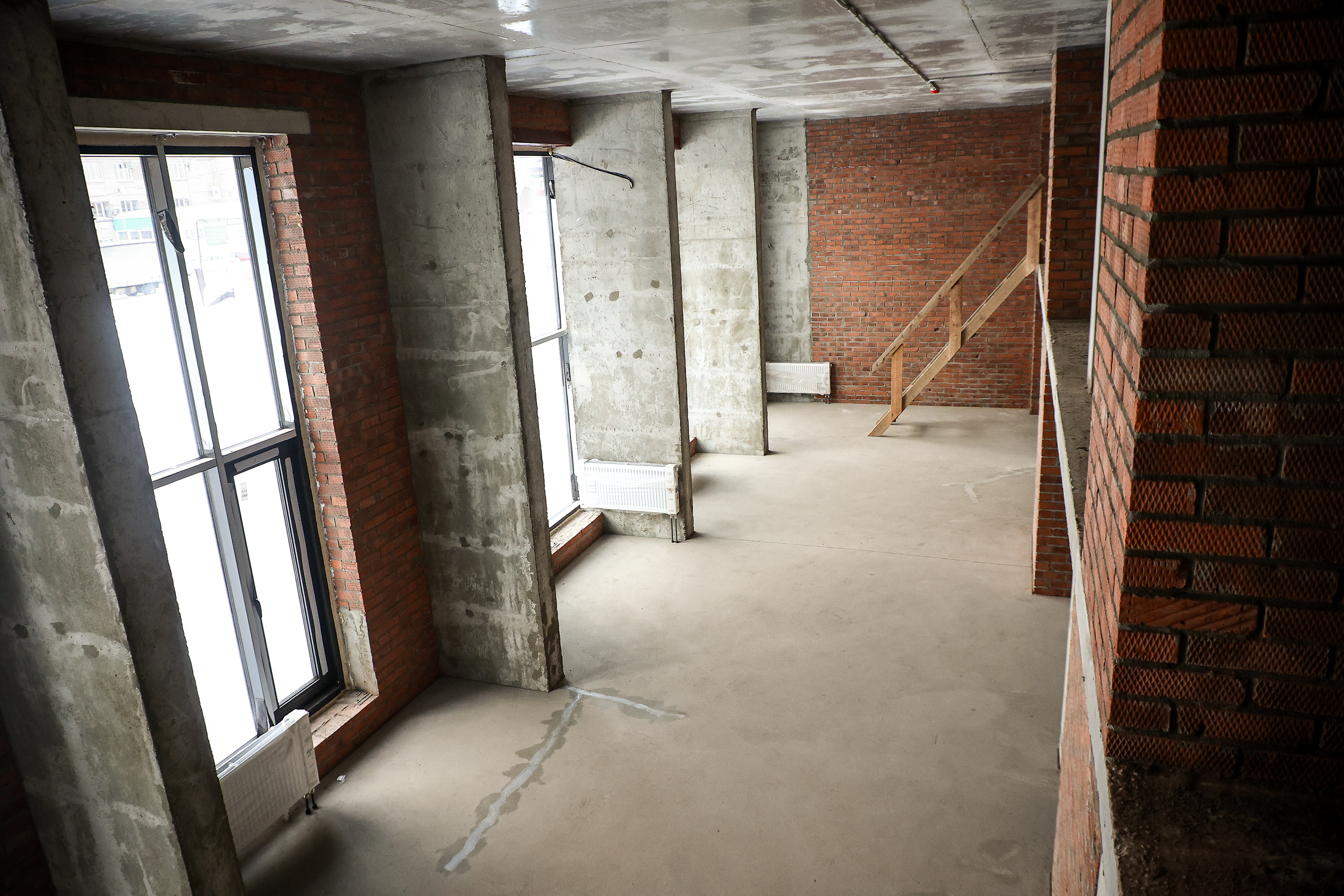 У новостройки пять уровней: четыре надземных и один подземный. На первом этаже находятся два больших пространства для коммерческих организаций по 140 и 104 квадрата и 16 двухуровневых помещений размером 26–35 квадратов, которые можно использовать под офисы.