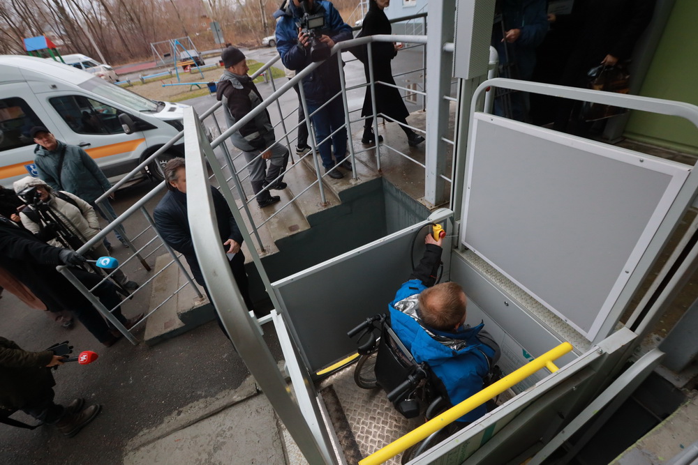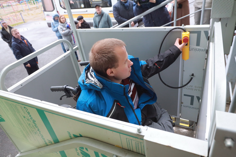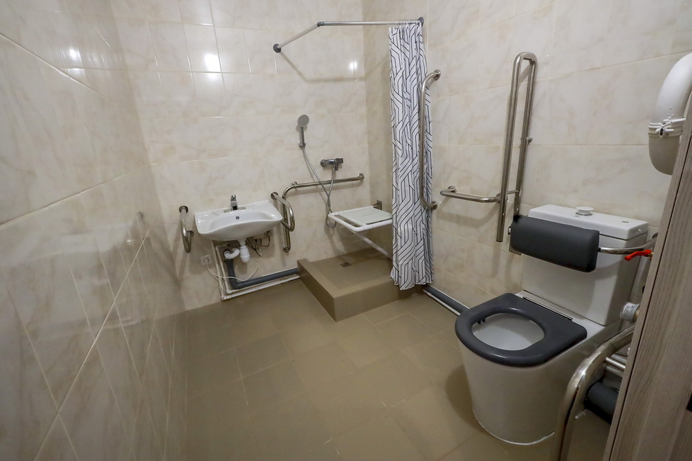 Для особенного жильца в квартире расширили дверные проёмы, установили низкую плиту, сделали специальные поручни в ванной комнате. Перед входом в дом предусмотрели лифт, чтобы мужчина мог самостоятельно подняться в подъезд.
