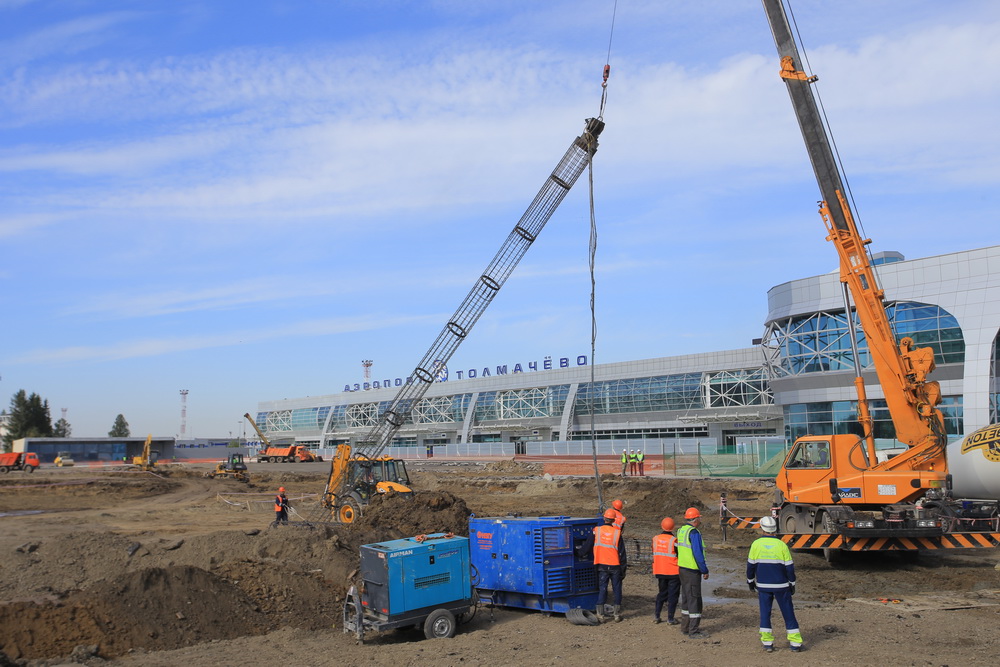 Новый аэровокзальный комплекс возводит турецкий подрядчик. Эта компания участвовала в расширении пассажирского терминала в столичном Домодедово. Здание в Толмачёво достроят через два года.
